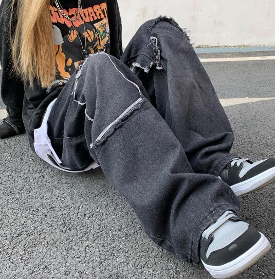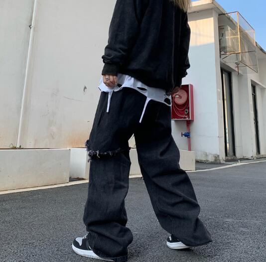 重ね着風 切替 デニム パンツ ジーンズ 韓国 K-POP HIPHOP 原宿系 ストリート ダンス衣装 Y2K レディース オルチャン