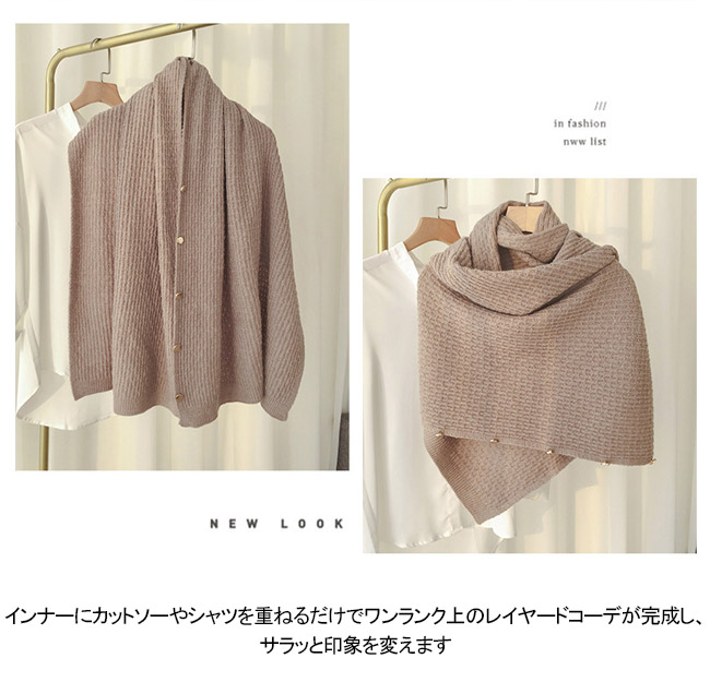 ポンチョとしてはもちろん、カーディガンやマフラーとしてもオシャレに感じる。