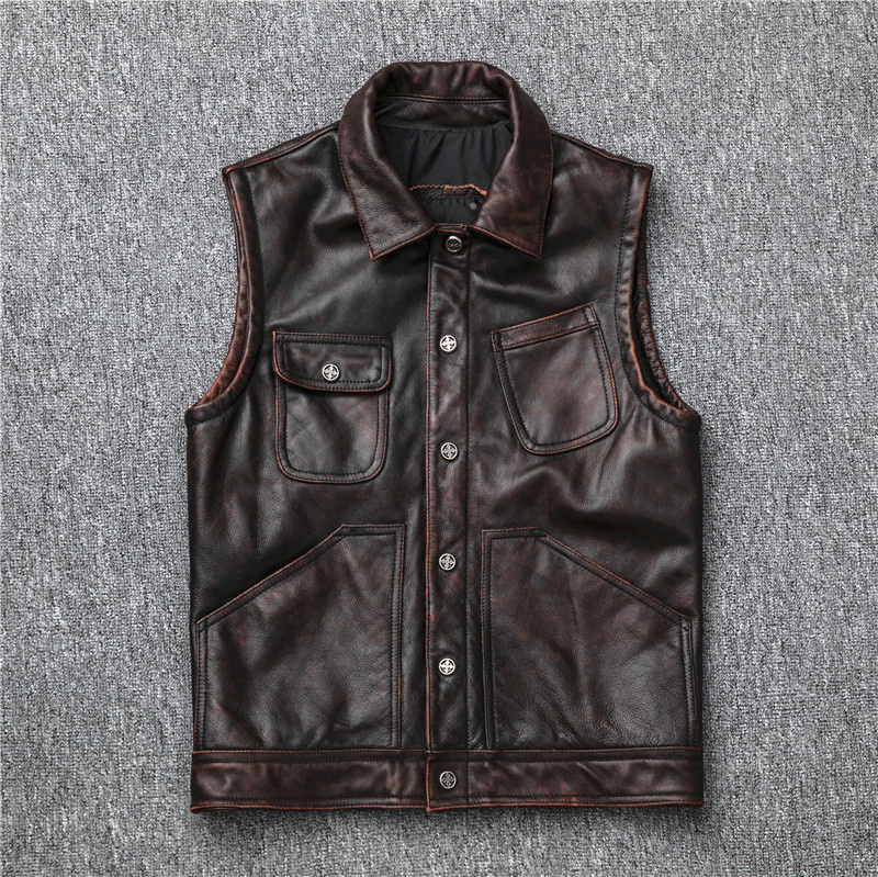 。ベスト バイク用ベスト 。ジャケット 革ジャン ライダースジャケット 牛革 メンズ ヴィンテージ風 レザージャケット