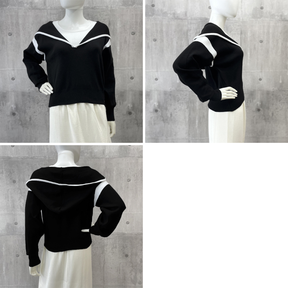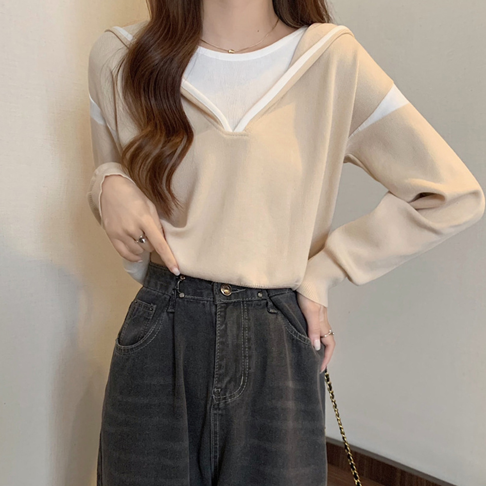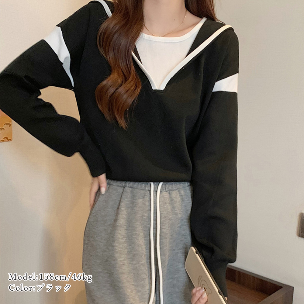レディース シンプル ニットパーカー カジュアル バイカラーニットソー 長袖 通勤 通学 プルオーバーパーカー 重ね着