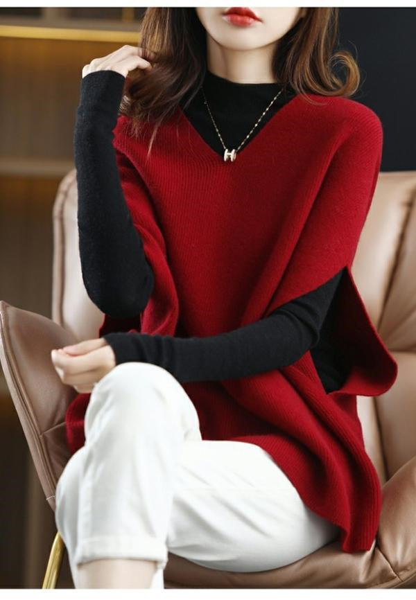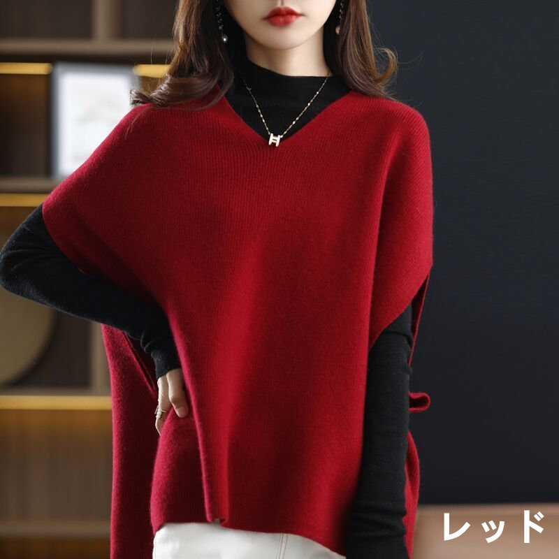 ベスト レディース ニットベスト 5カラー S-3XL Vネック ノースリーブ ケープ ケープベスト トップス 重ね着 ゆったり シンプル カジュアル 柔らか Vネックベスト 無地 春 秋 冬
