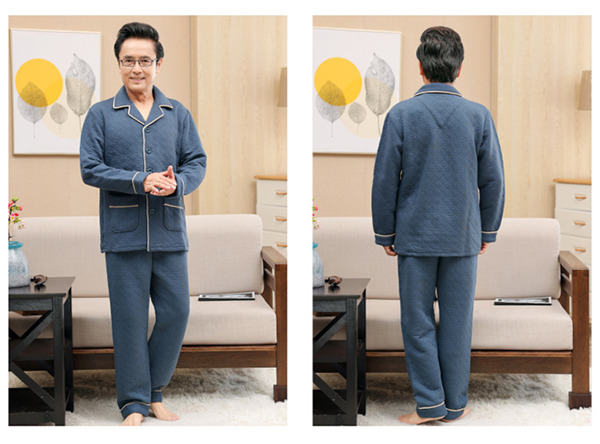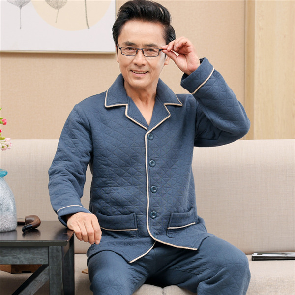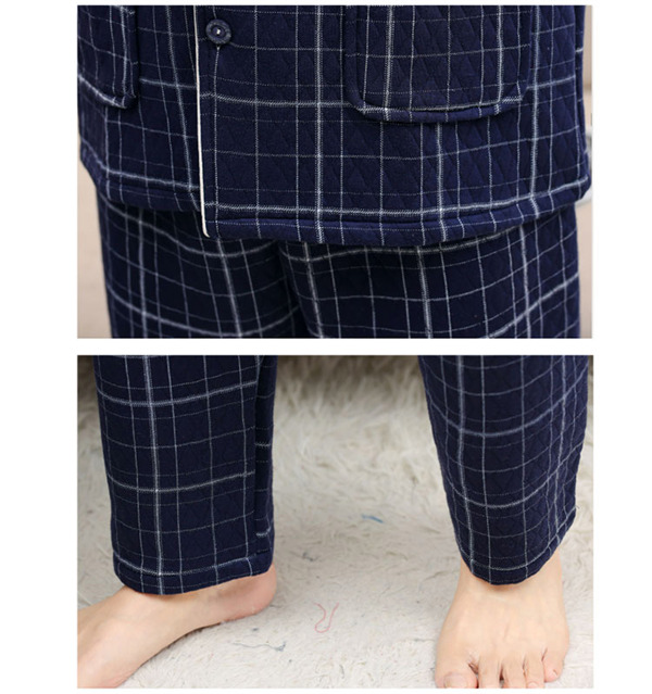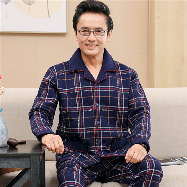 厚手 ルームウェア パジャマ メンズ チェック柄 キルトパジャマ 秋冬 襟
