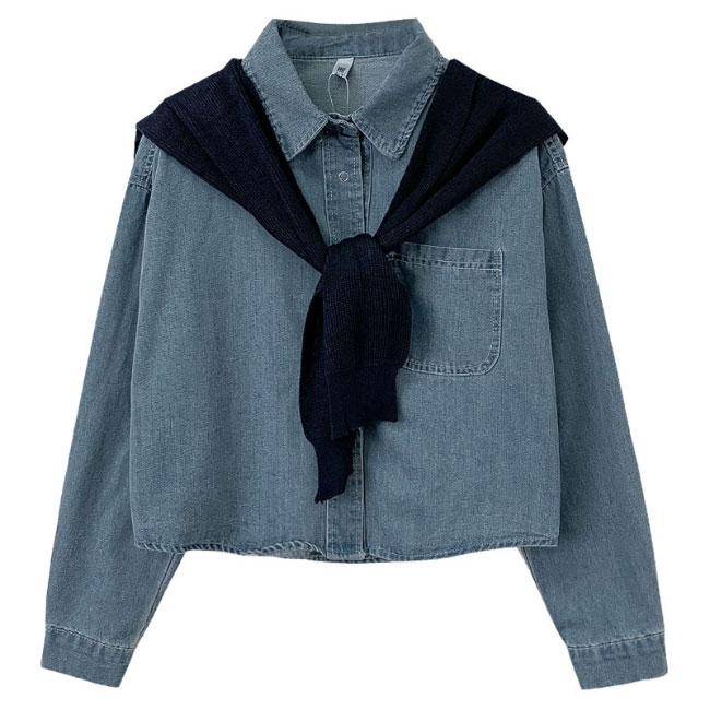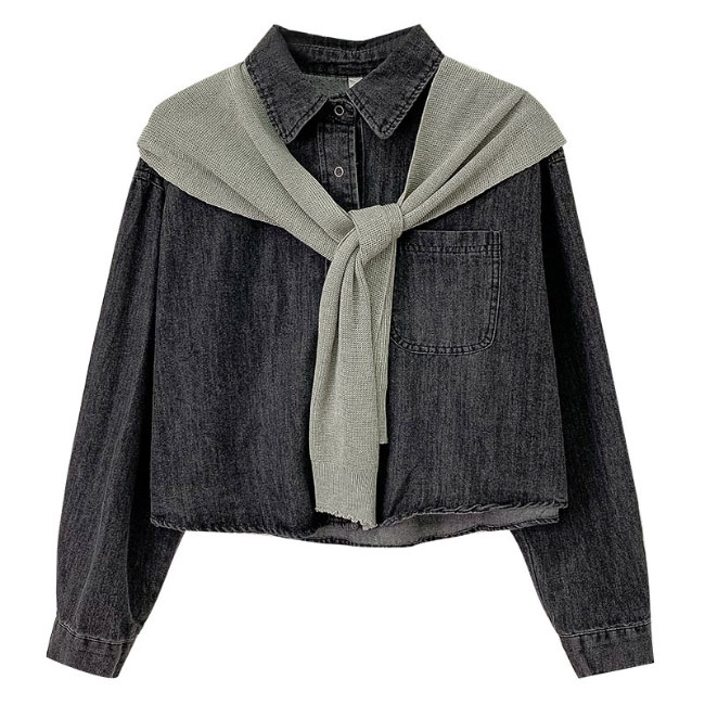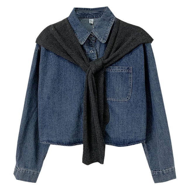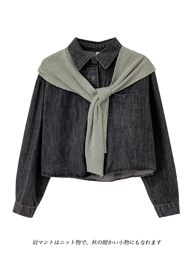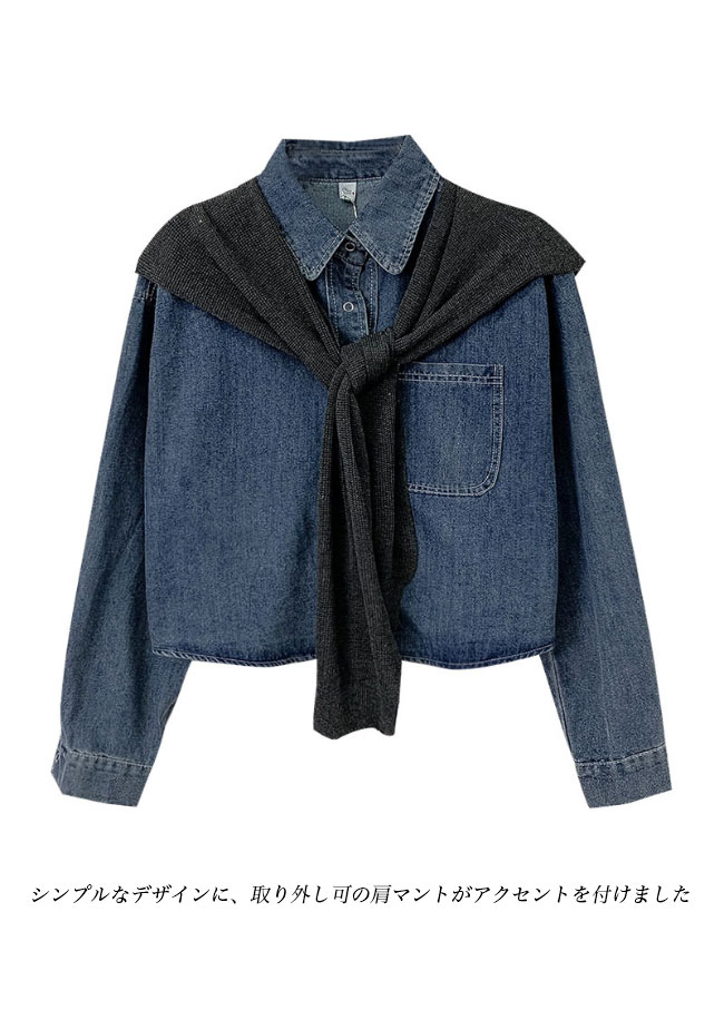 デニム シャツジャケット レディース デニムシャツ 肩マント 2点セット デニムジャケット ゆったり レトロ 春 秋 アウター トップス 長袖 シャツ オーバーサイズ カジュアルシャツ 長袖シャツ ショール ブルー ブラック