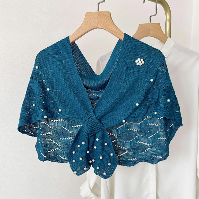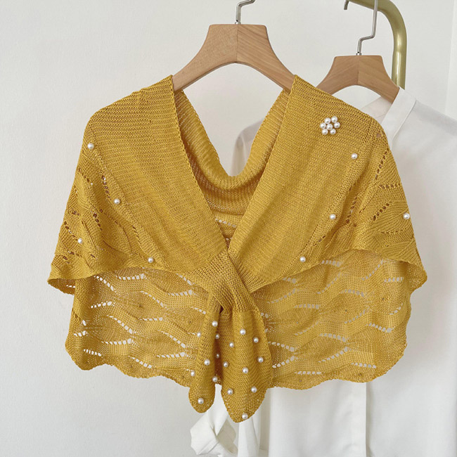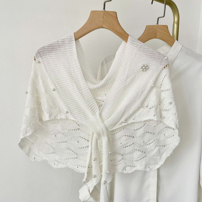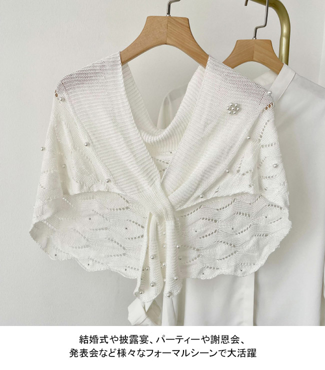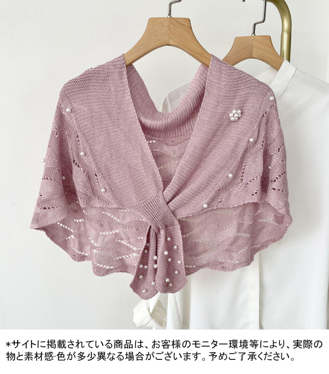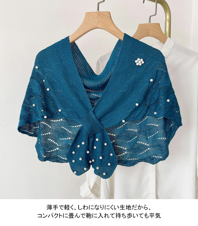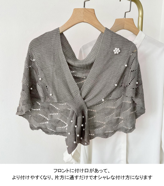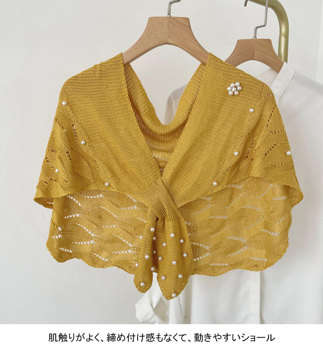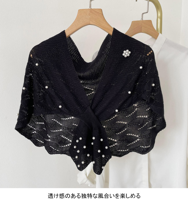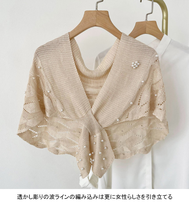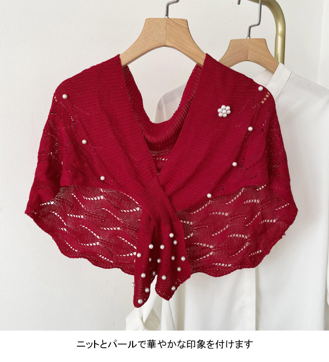 パール付きでエレガントな印象を演出する透かし編みショールが登場!