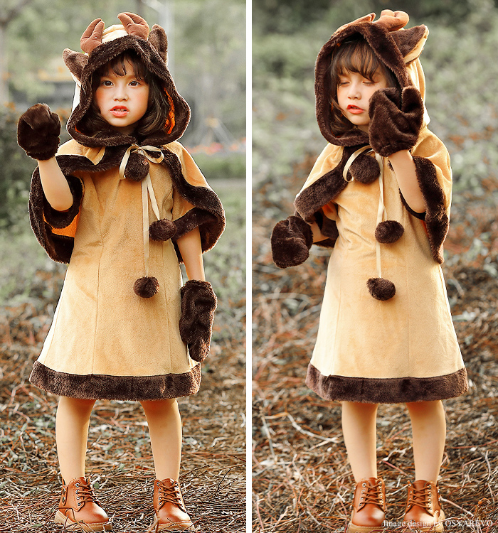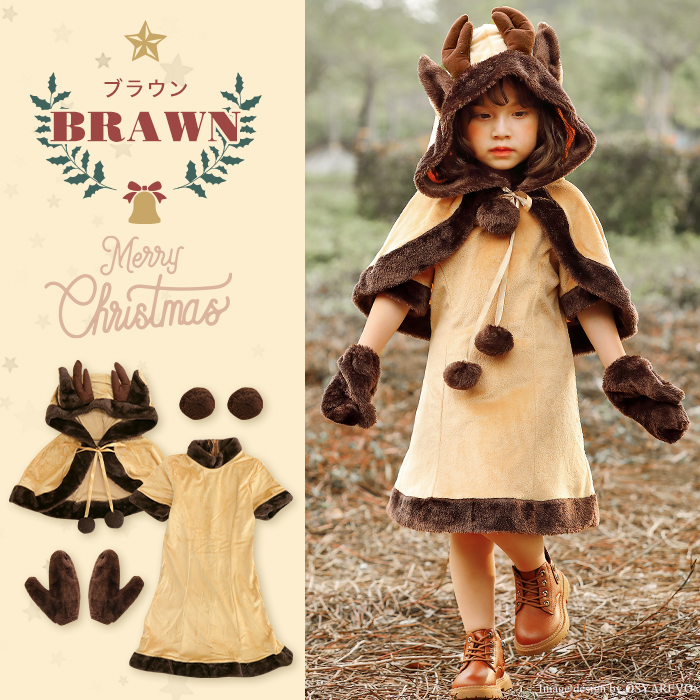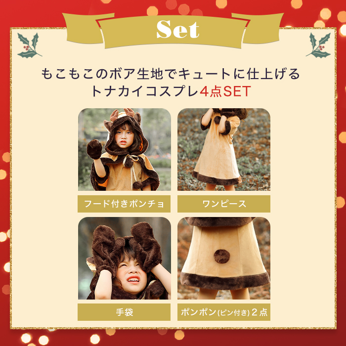 トナカイ プレ 女の子 子供 衣装 クリスマス 可愛い ワンピース トナカイプレ サンタ キッズ ポンチョ チューム 子ども用 トナカイ仮装