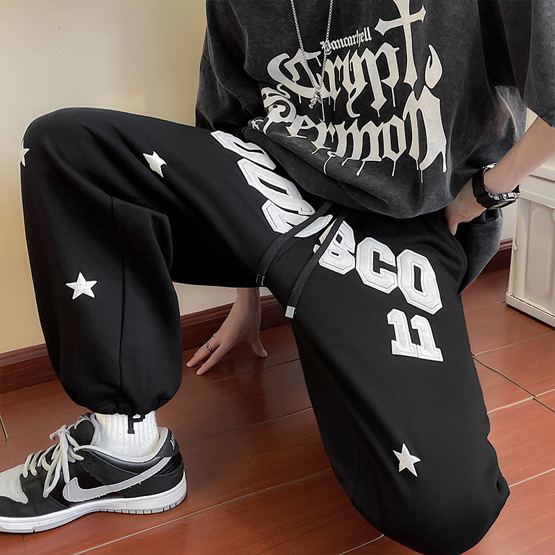 ロゴ 英文字 星柄 ロングパンツ 韓国 ストリート HIPHOP 原宿系 衣装 レディース K-POP ダンス