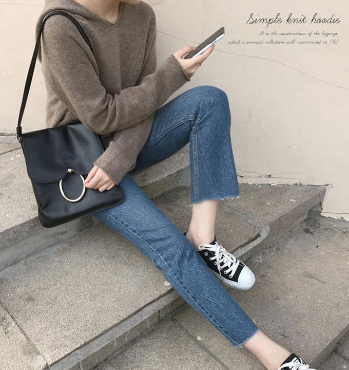 長袖ニット 韓国 かわいい 着回し 秋冬