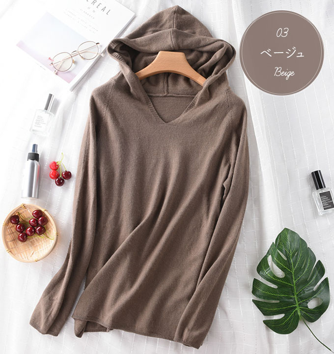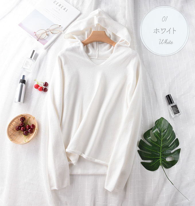 ニットレディース ニット Vネック 薄手 秋 。送料無料 ホワイト フ