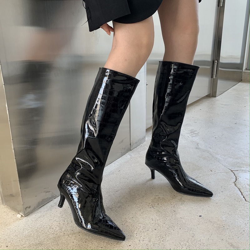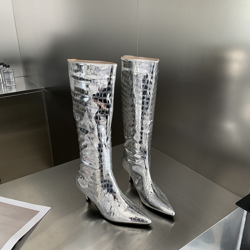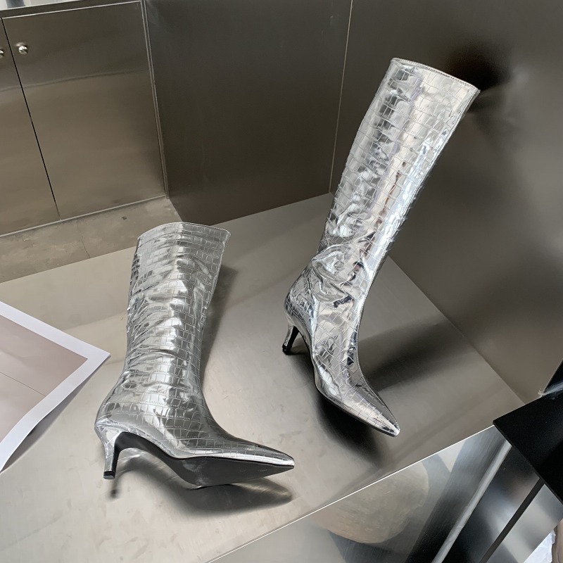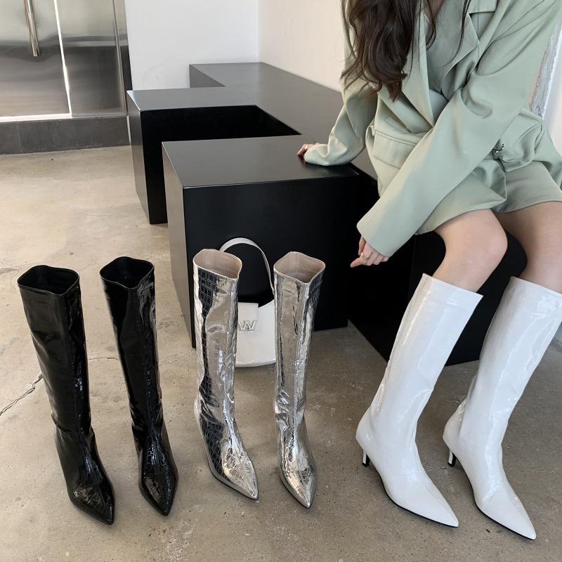メタリック シルバー エナメル ロングブーツ ピンヒール 韓国 衣装 ダンス HIPHOP レディース ストリート 原宿系