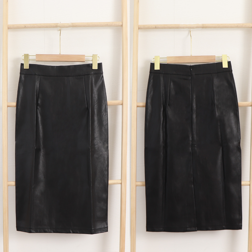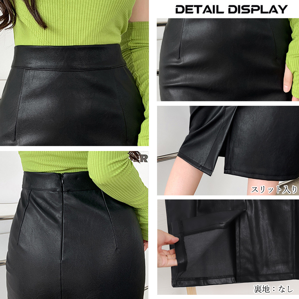 やわらかく滑らかなフェイクレザーを使用、シンプルなPUレザータイトスカート
