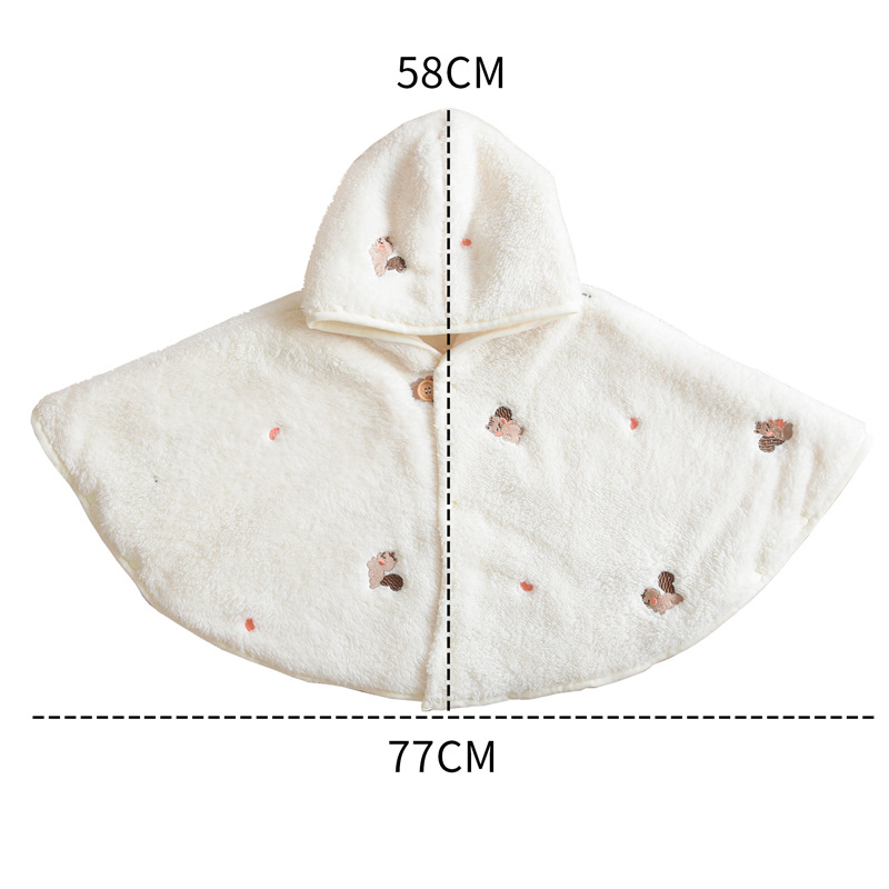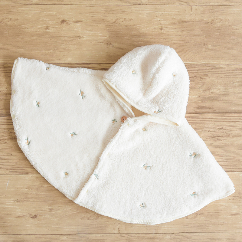 赤ちゃん ポンチョ 4色 刺繍 くま ベア うさぎ チューリップ オリーブ リス もこもこ ふわふわ フード フリース 白 ホワイト おしゃれ 可愛い 韓国 ナチュラル コットン 綿 防寒 抱っこ アウター ベビー ぽんちょ マント コート 男の子 女の子