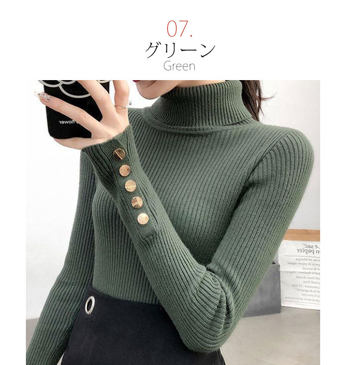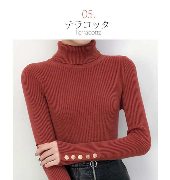 商品名:袖ボタンタートルネックニット SLEEVE BUTTON TURTLENECK KNIT