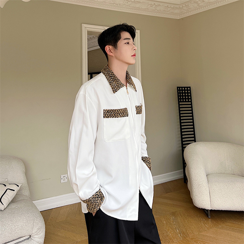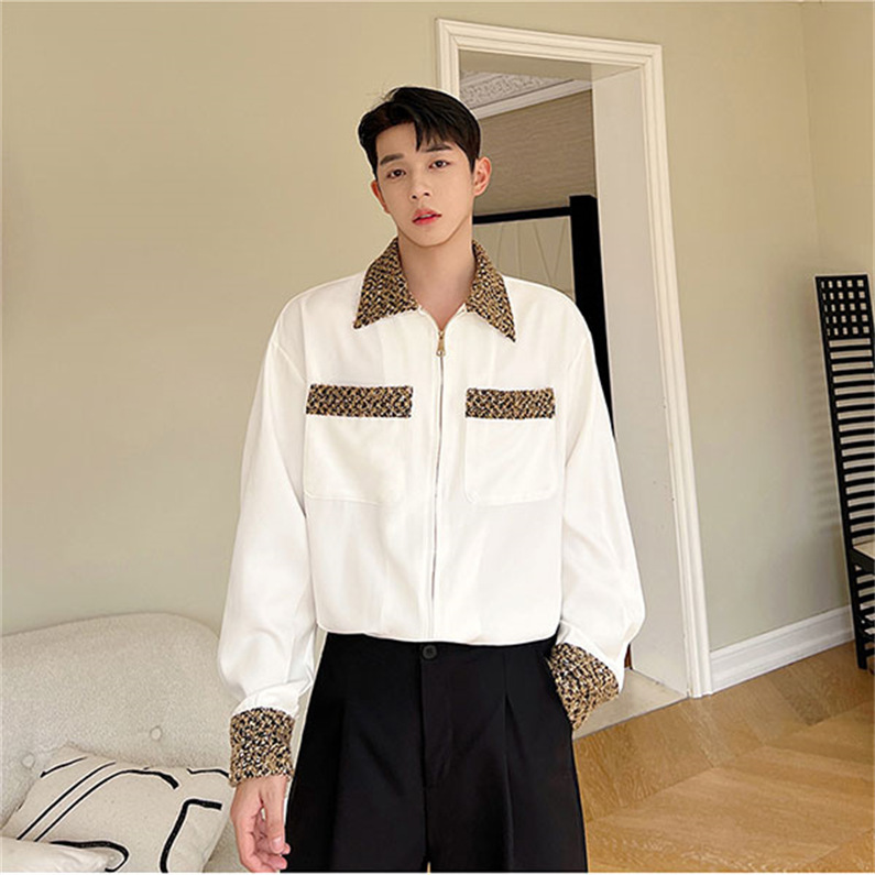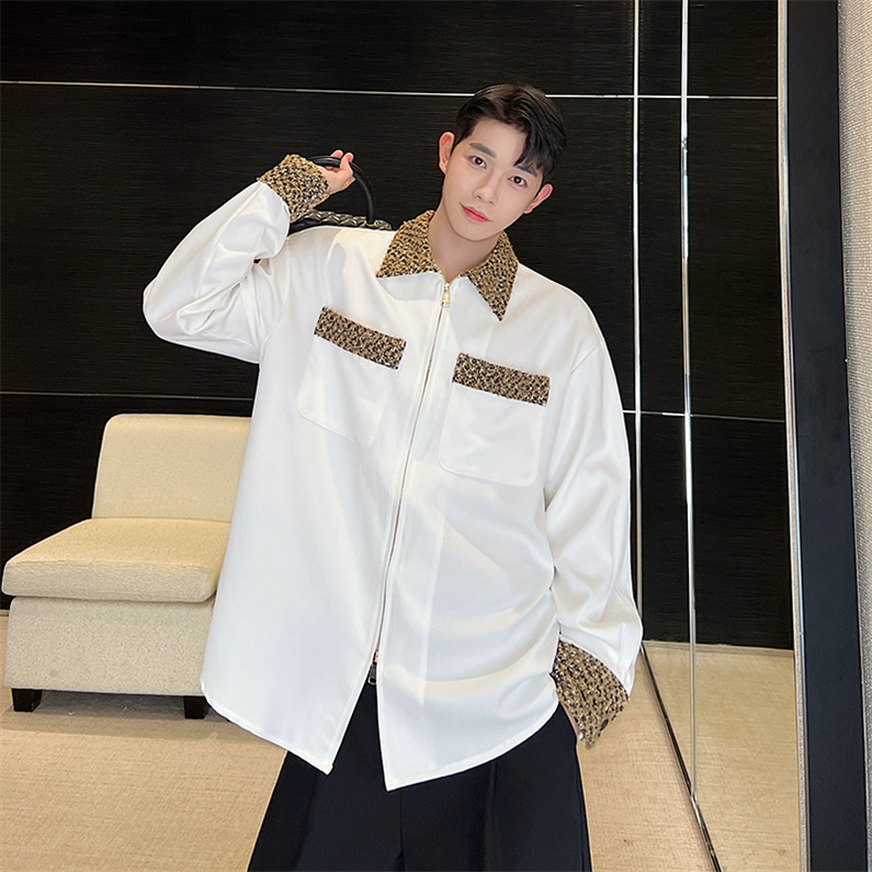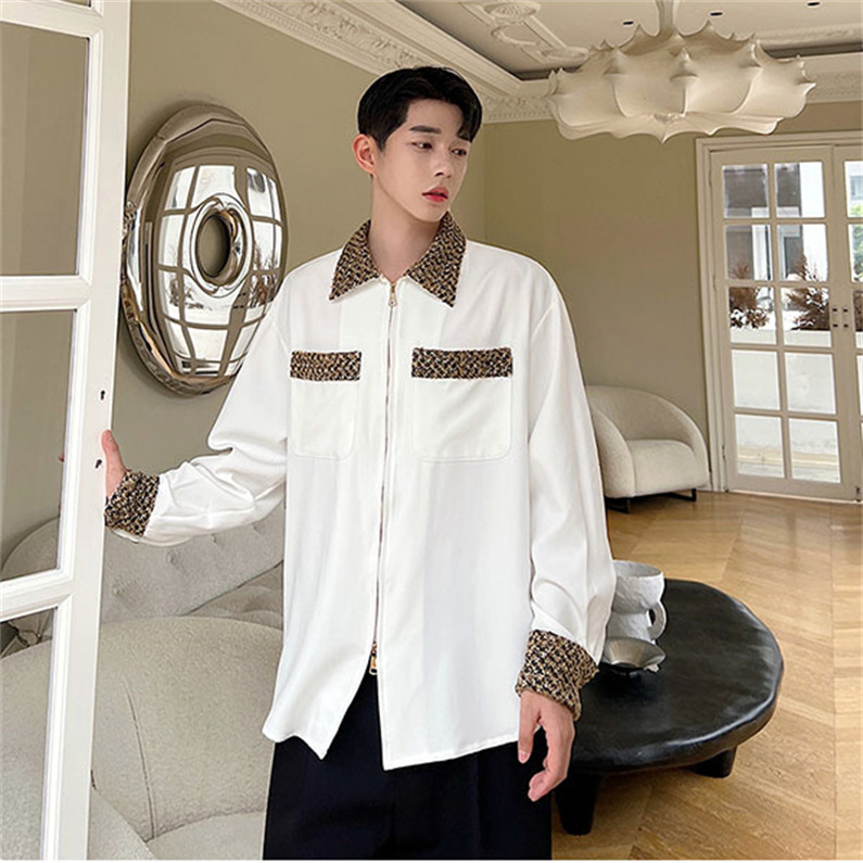 メンズ シャツ カジュアルシャツ 長袖 ポケット 白 ワーク 春秋 上質 スタイリッシュ ワイシャツ ダンスウェア 上着 クラブ 公演 男子トップス 発表会