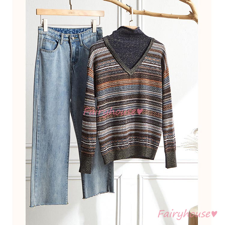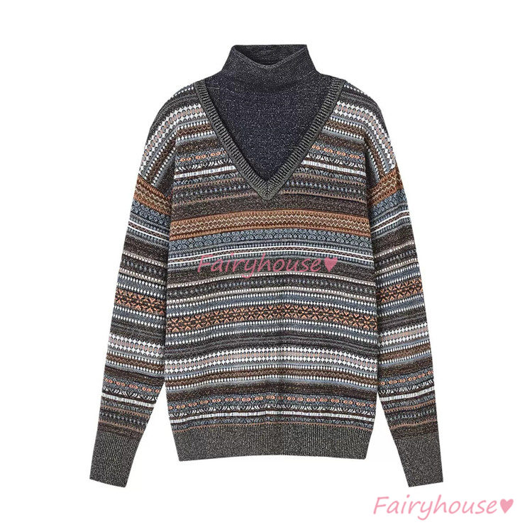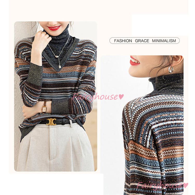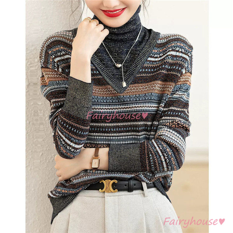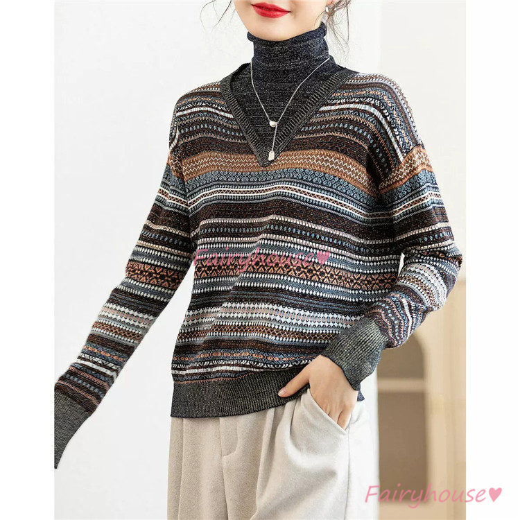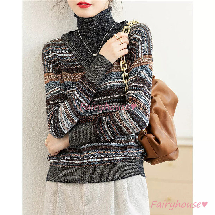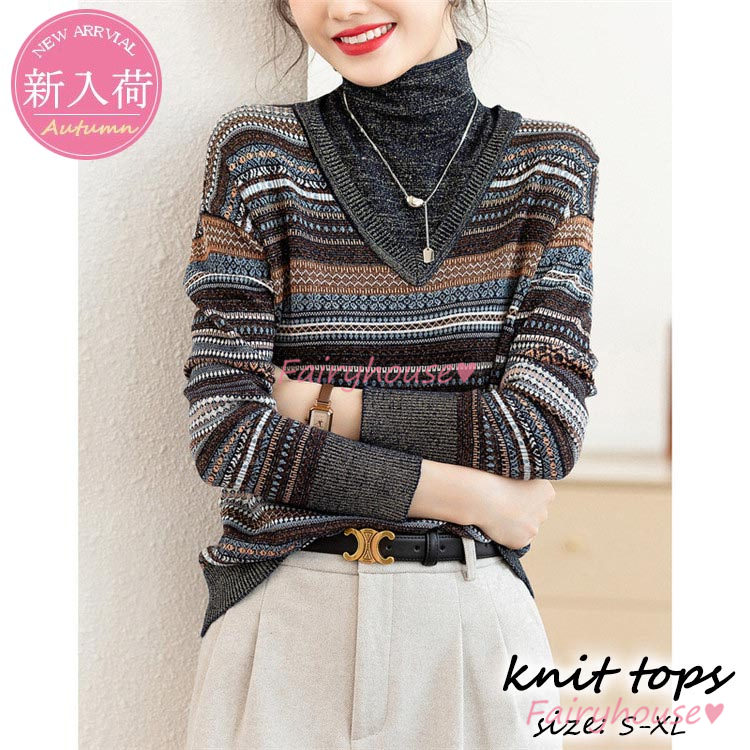 連携キーワード:ニットトップス レディース 秋冬 40代 長袖セーター 配色 ハイネック ショット丈 セーター ゆったりプルオーバー オシャレ 大人ニットインナー 50代 30代
