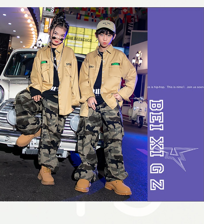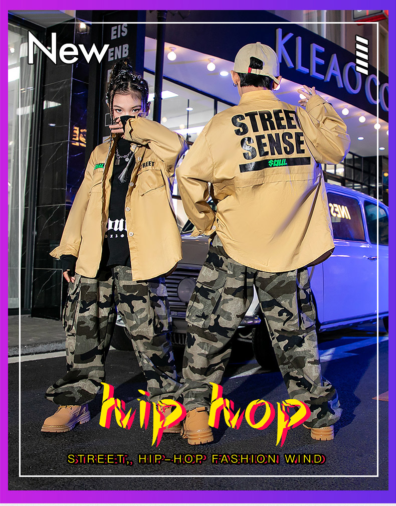 キッズダンス ヒップホップ HIPHOP HIP HOP K-POP 韓国 ガールズヒップホップ ダンスコンテスト ダンス発表会 子供衣装 子供ダンス衣装 練習着 ダンスレッスン着 ファッション セットアップ 上下セット ダボダボ ダボパン ミリタリー 長袖 かっこいい カッコいい おしゃれ 男の子 女の子 ジュニア レディース 大人 派手 目立つ 120CM 130CM 140CM 150CM 160CM 170