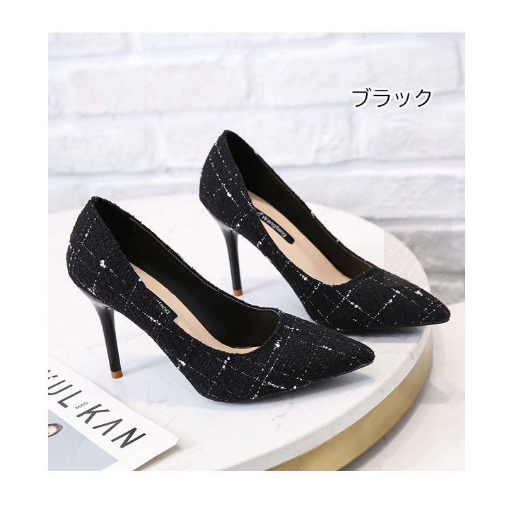 パンプス ピンヒール ハイヒール ツイードパンプス ツイード 靴 あすつく 春夏 秋冬 痛くない 結婚式 お呼ばれ 歩きやすい 送料無料