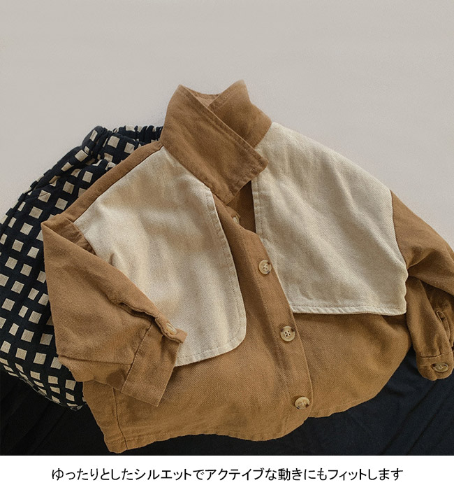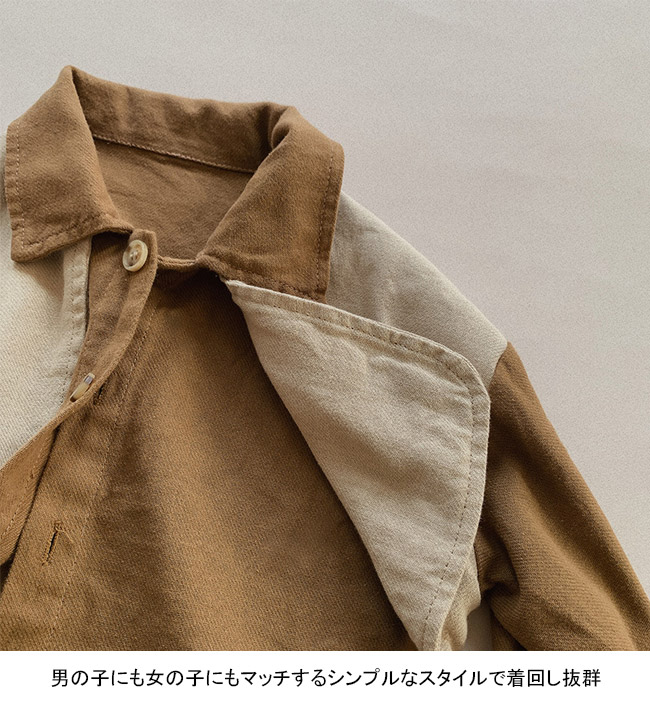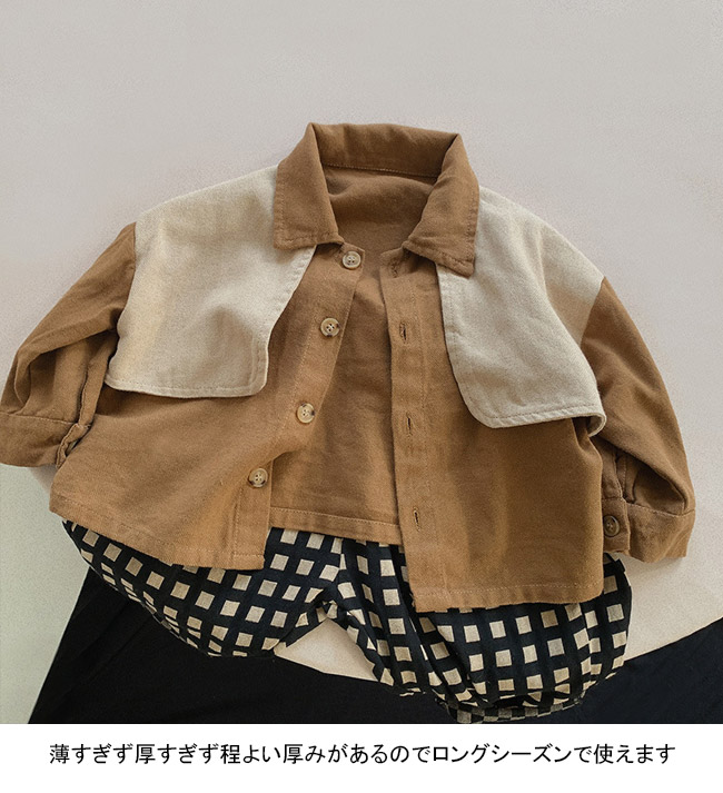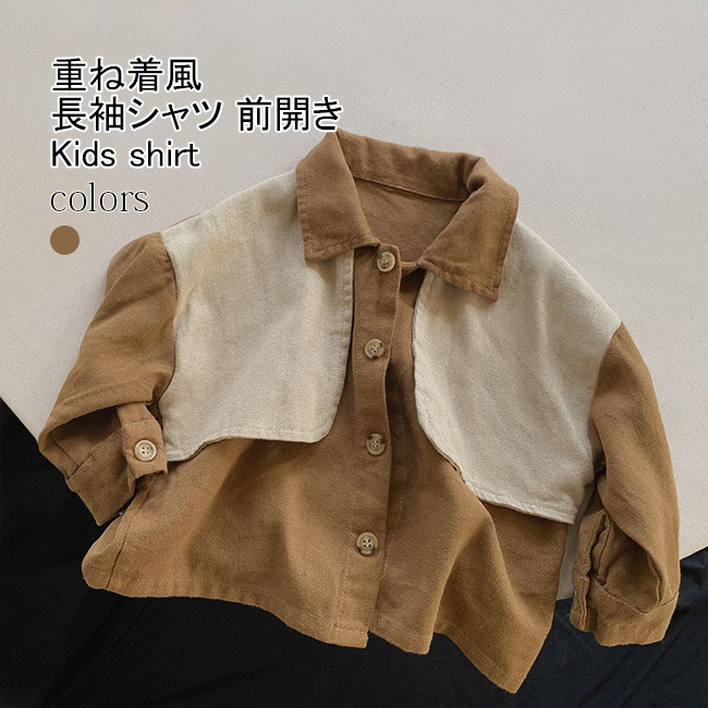 長袖シャツ キッズ ライトアウター 無地 折り襟 前開き 重ね着風 トップス カジュアル 前ボタン ゆったり 動きやすい シンプル 春秋 子供服 男児 女児 ジュニア ユニセックス コットン 襟入り 普段着 ブラウス アウトドア