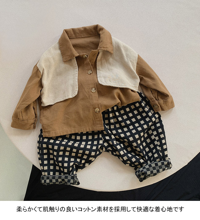 子供用、重ね着風ライトアウター 長袖シャツが新入荷