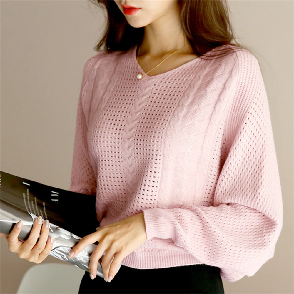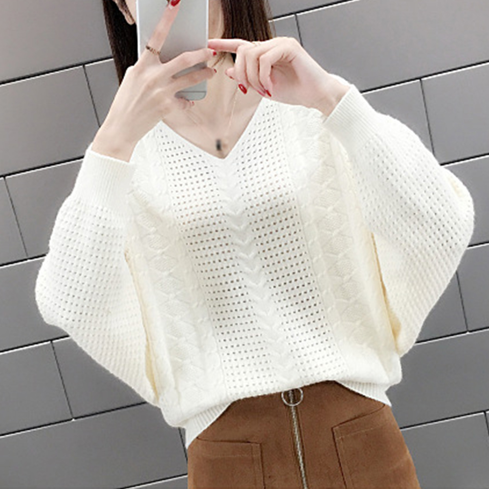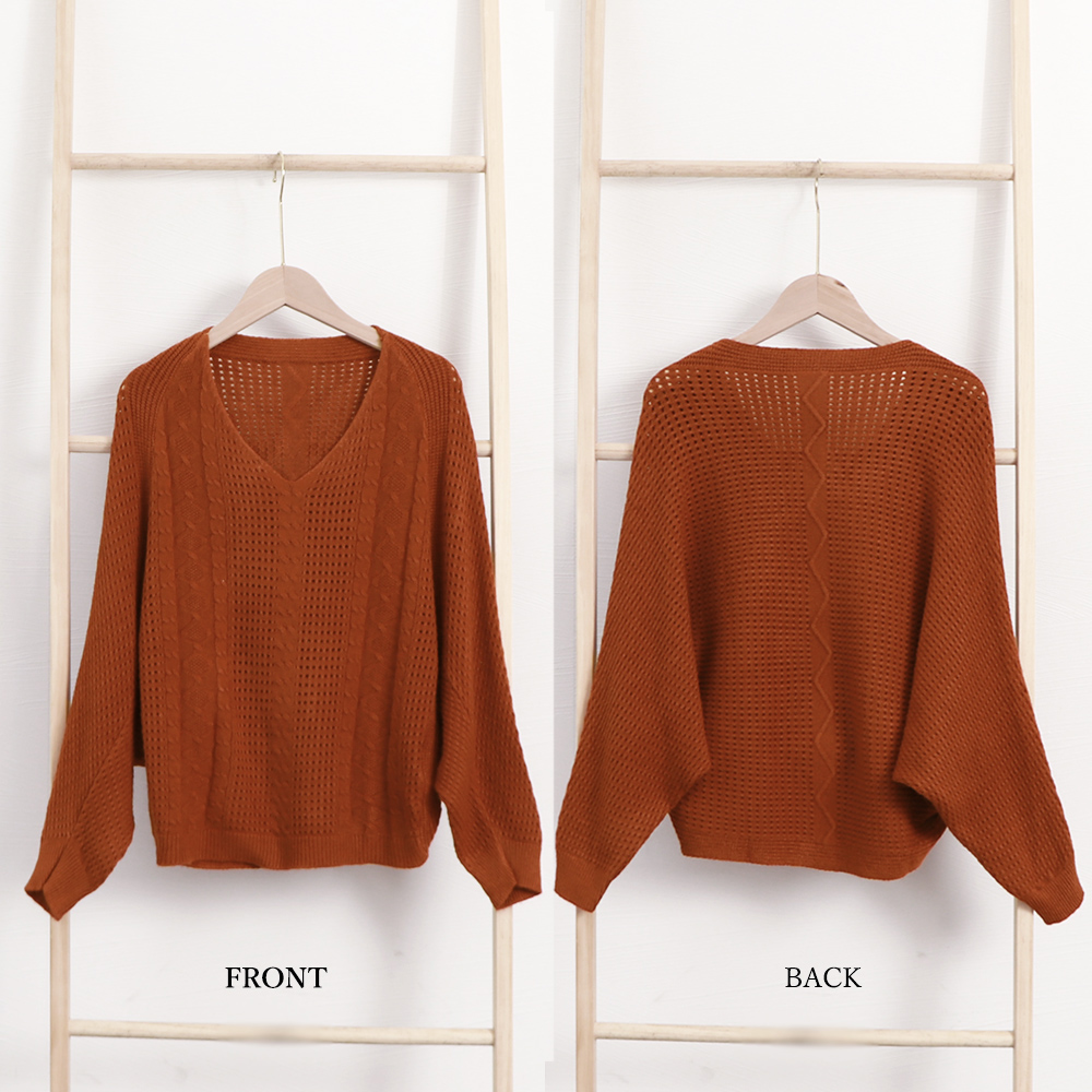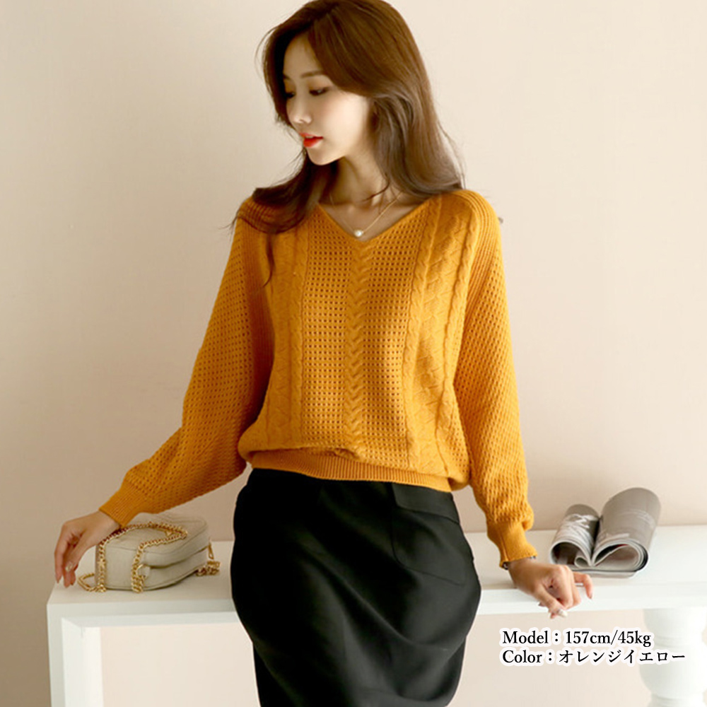 ドルマンニットニット きれいめ 透かし編み Vネック 柔らかい着やせニットソー可愛いフェミニンベーシックお洒落レイヤード