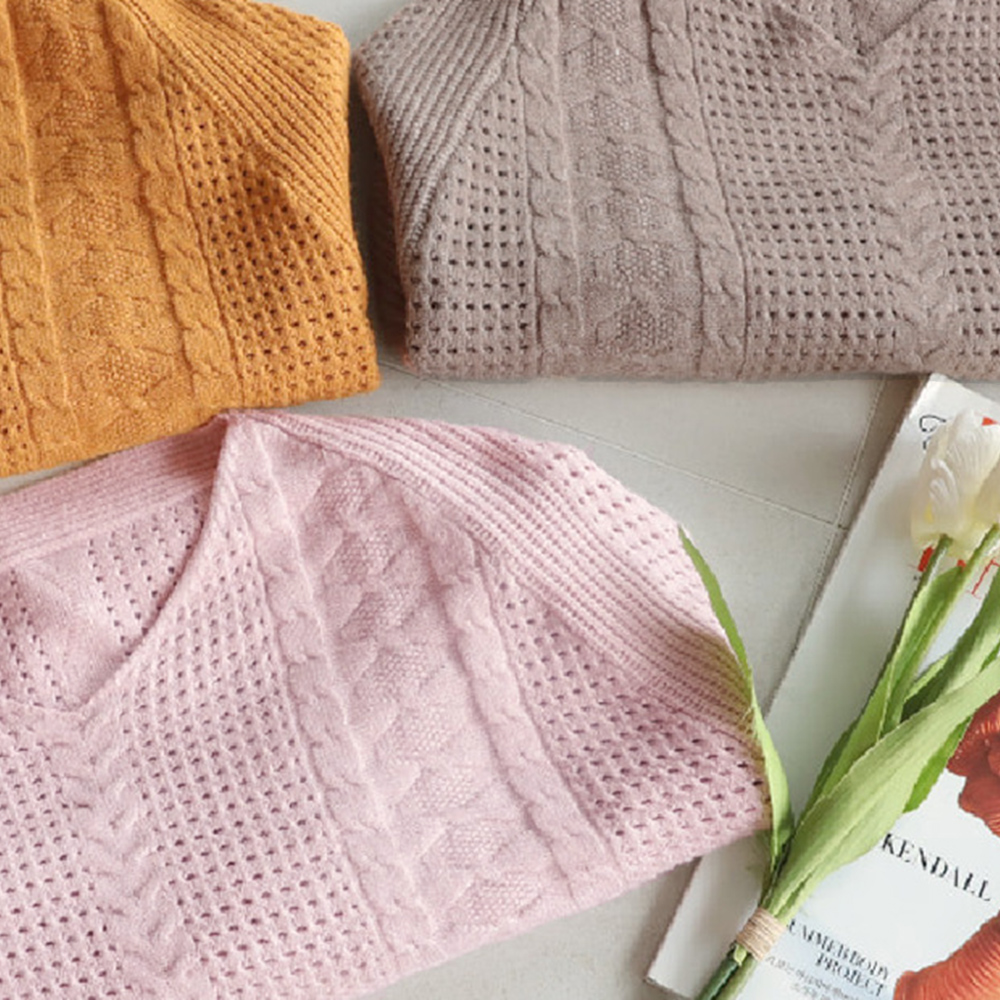 ふわっとした柔らかな手触りが心地良いケーブル編みニットトップス