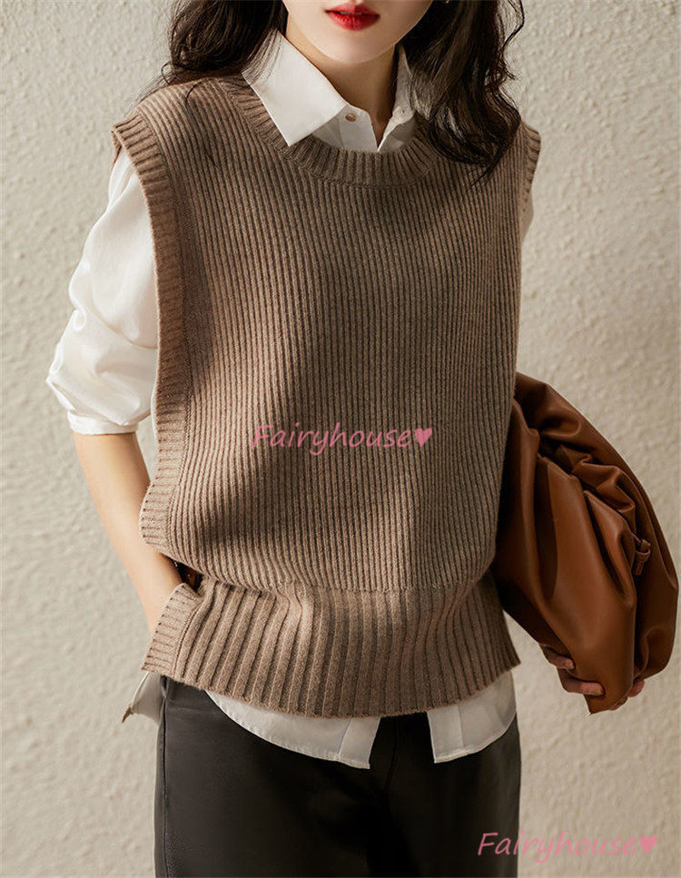 連携キーワード:ニットベスト ベスト レディース 秋 冬 40代 ニット タンクトップ トップス ラウンネック ドルマンスリーブ 重ね着 ベストノースリーブ タンク 秋 コーデ
