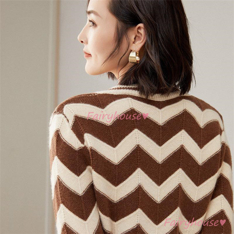 連携キーワード:ニット セーター トップス レディース 秋冬 ラウンネック 長袖ニット きれいめ ニットインナー オシャレ 幾何柄 カジュアルニット 通勤 着痩せ