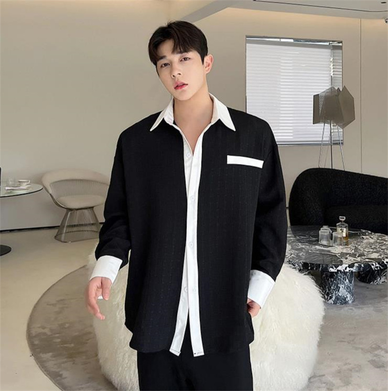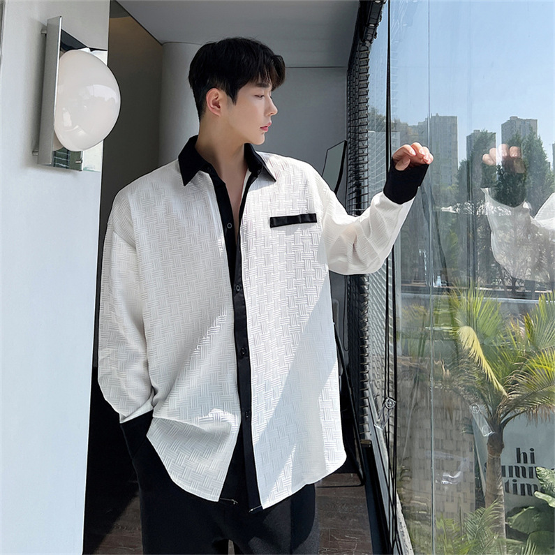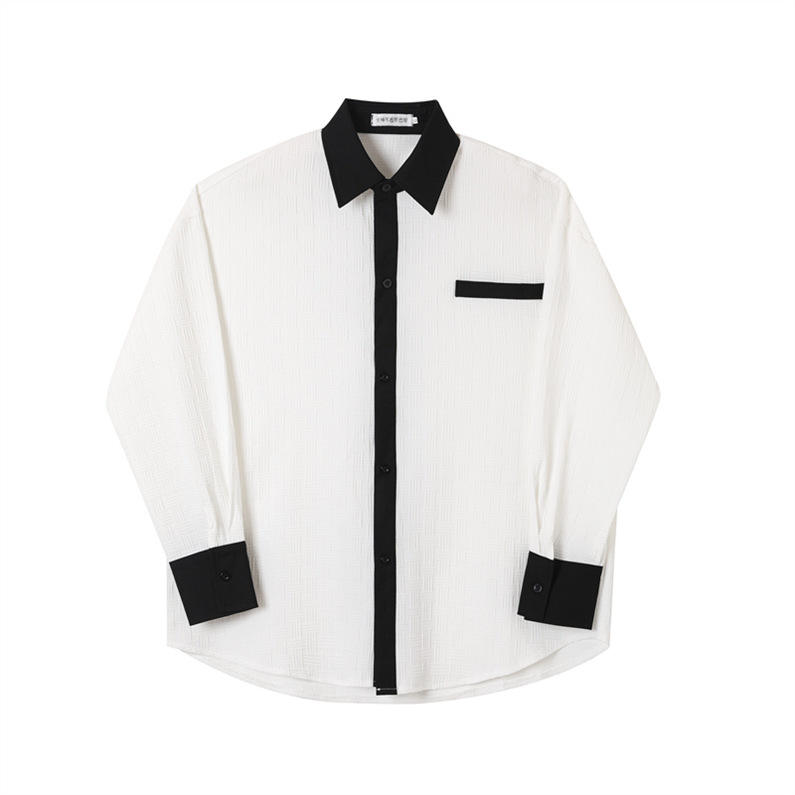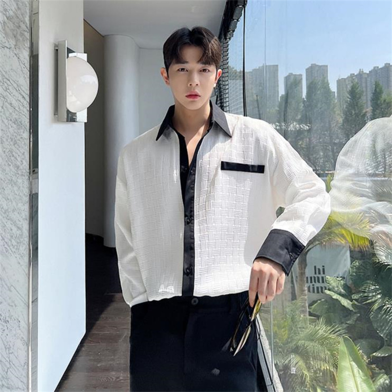 メンズ シャツ カジュアルシャツ 長袖 柄物 白黒 上着 春秋 男子トップス 発表会 クラブ 公演 ワイシャツ スタイリッシュ ワーク ダンスウェア