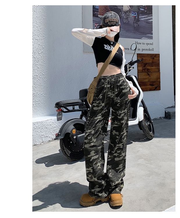 カモフラ 迷彩柄 ロングパンツ 韓国 ストリート オルチャン レディース K-POP 原宿系 衣装 ダンス HIPHOP