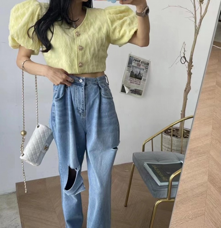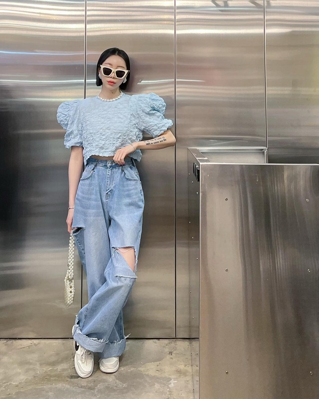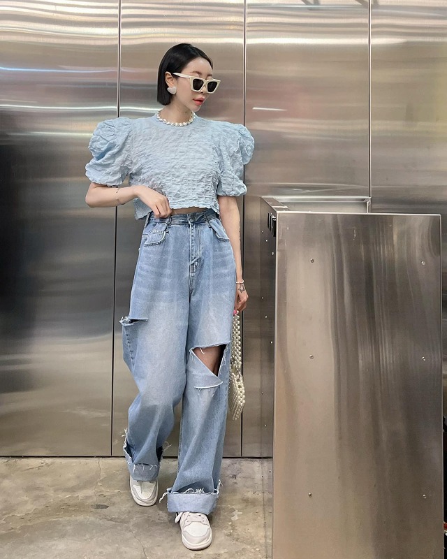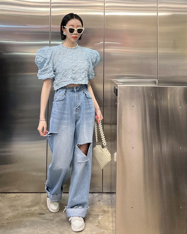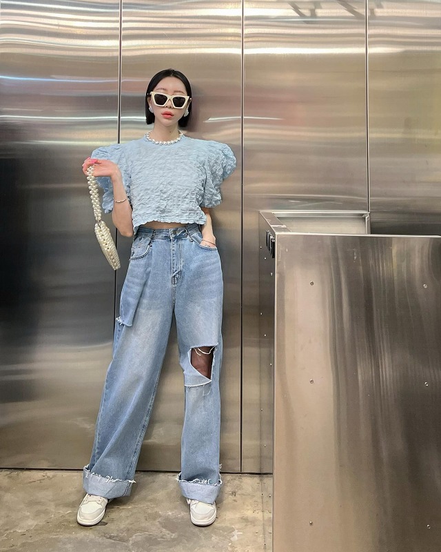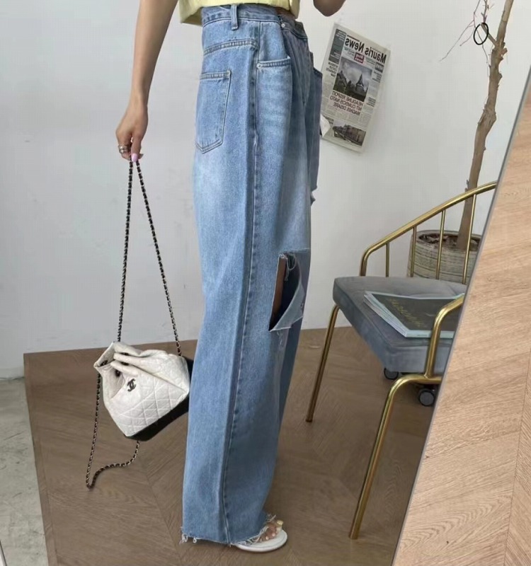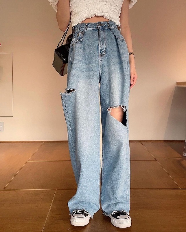 クダメージ デニム パンツ ジーンズ 韓国 オルチャン ストリート K-POP Y2K 原宿系 レディース ダンス衣装 HIPHOP