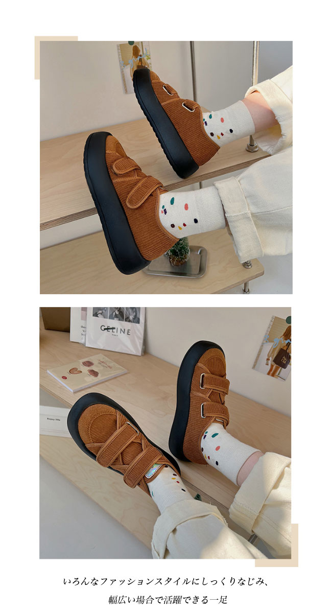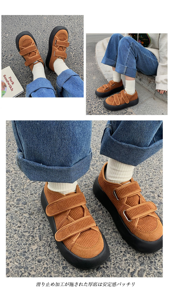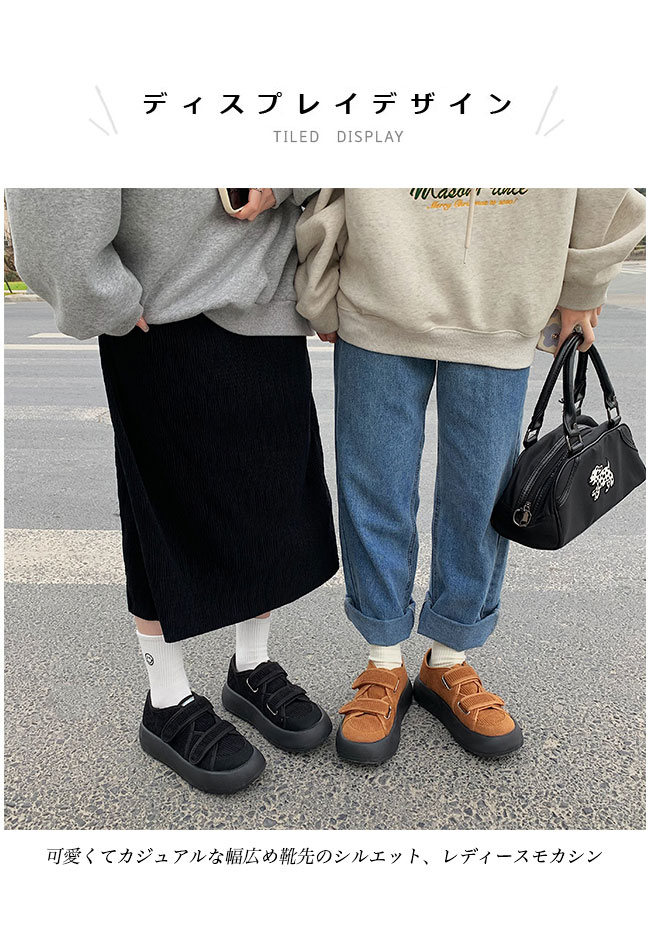 モカシン レディース ローファー 厚底 フラットシューズ 楽ちん スニーカー マジックテープ 厚底ローファー シューズ 女性 厚底シューズ 春 秋 冬 靴 カジュアルシューズ おしゃれ くつ 婦人靴 ブラウン ブラック