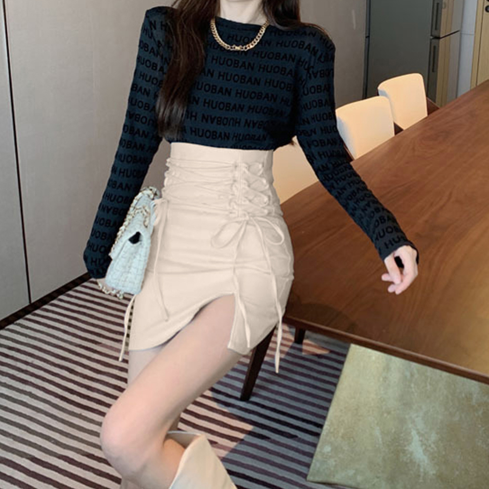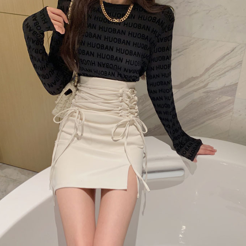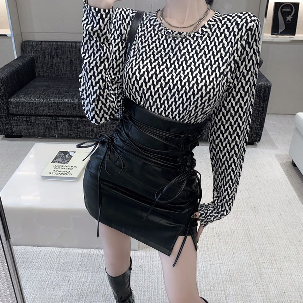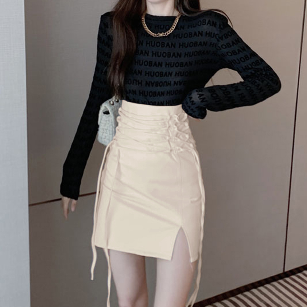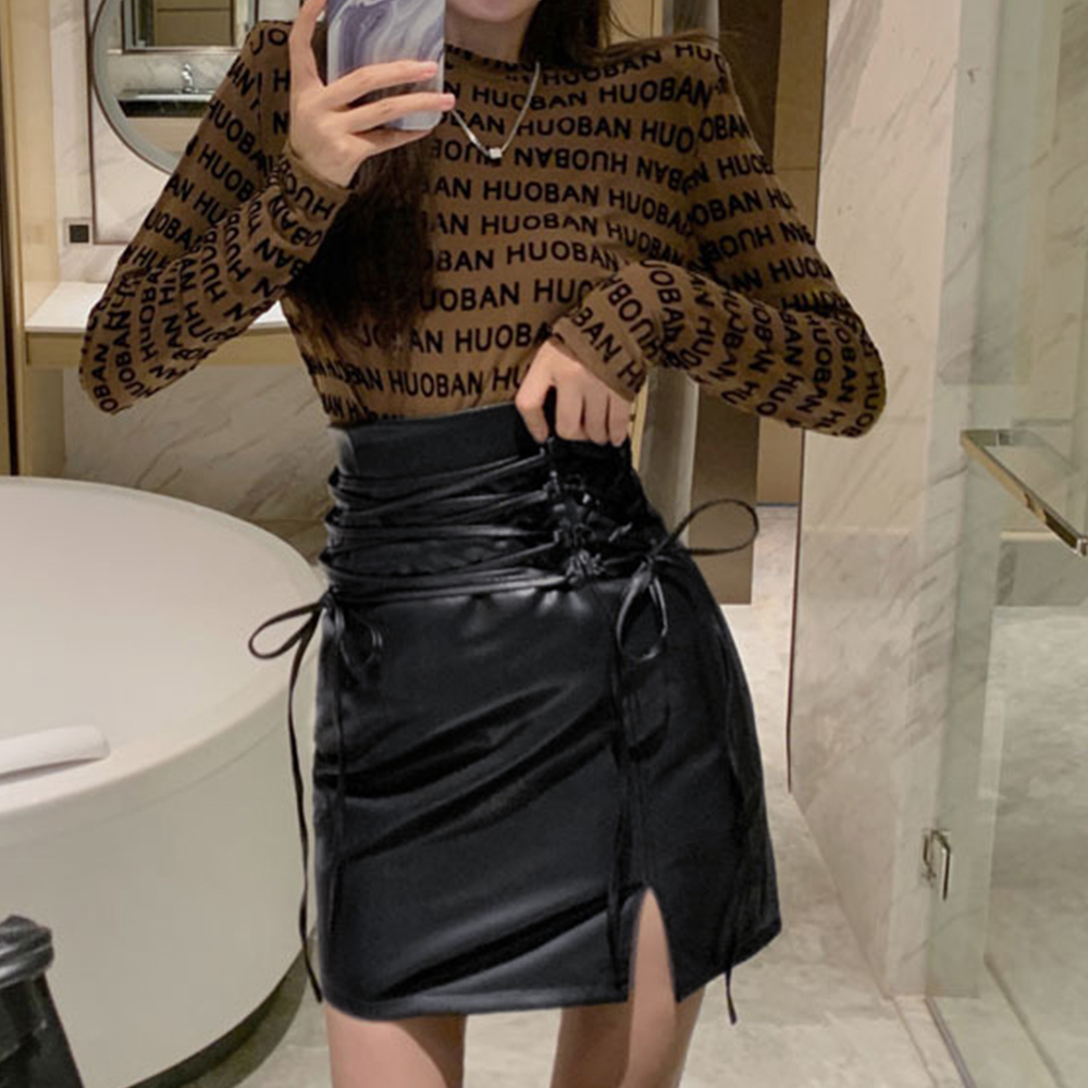 柔らかいPUレザー素材を使ったレースアップのタイトミニスカート