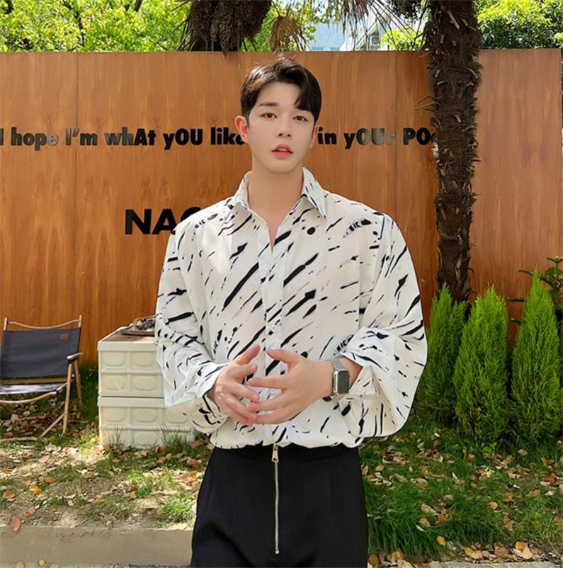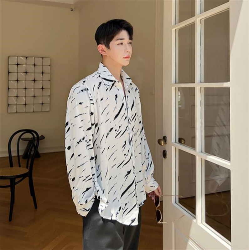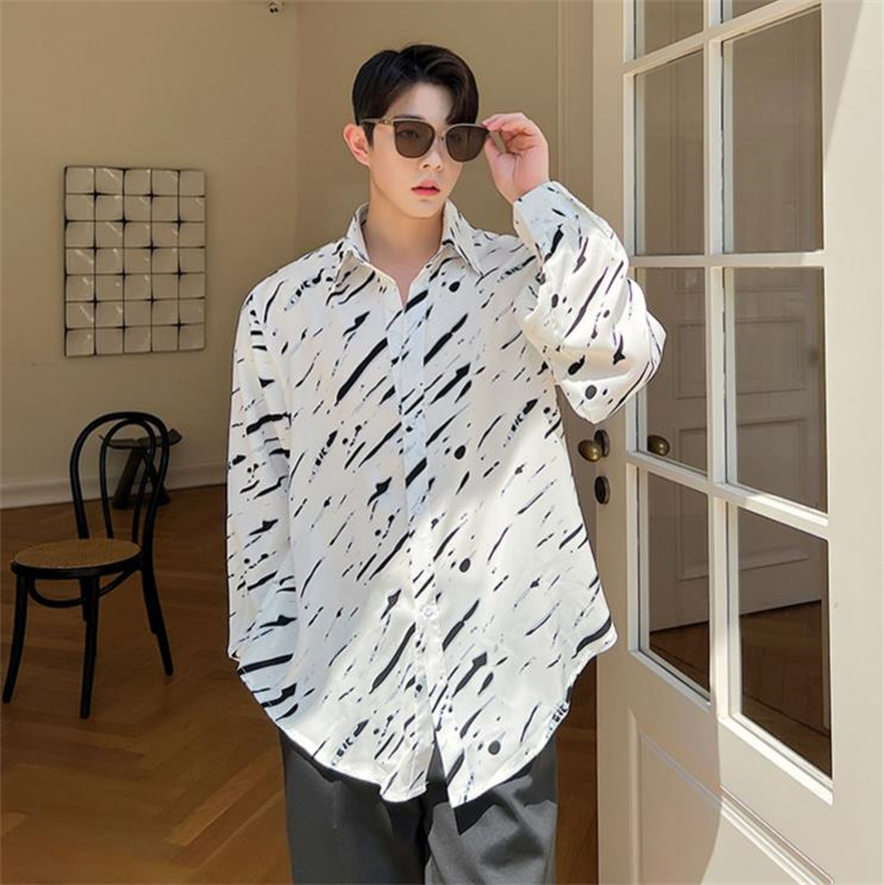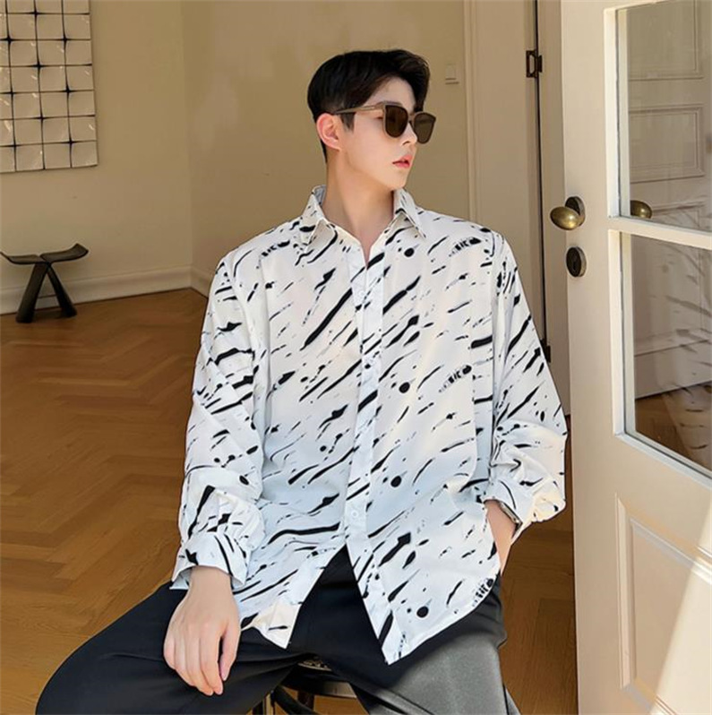 メンズ シャツ カジュアルシャツ 長袖 白黒 ワーク ゆったり 男子トップス 公演 春秋 アロハシャツ ダンスウェア クラブ 発表会 上着 柄物 スタイリッシュ