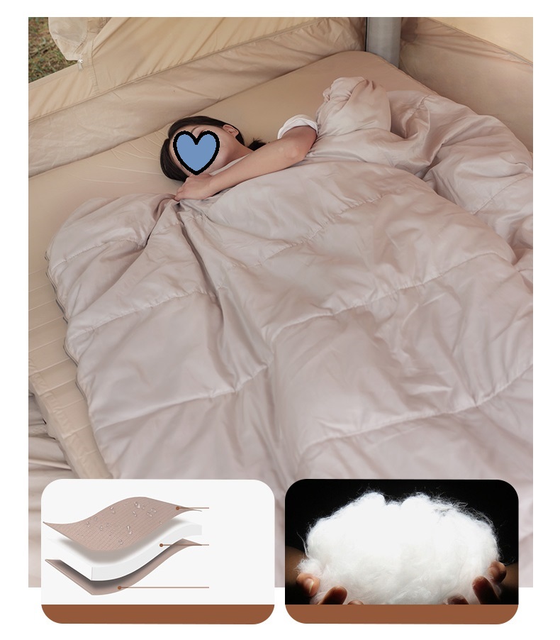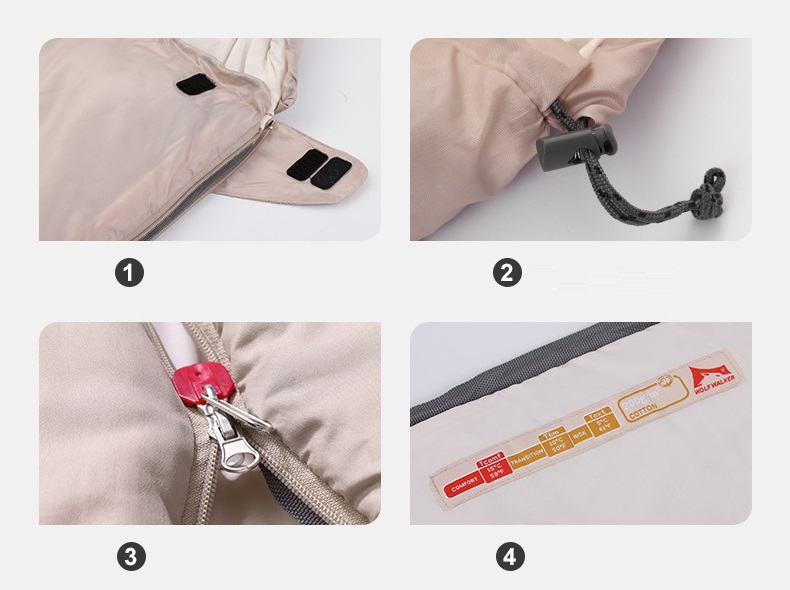 素材構成 側生地:さらさら高密度生地(ポリエステル100%) 撥水コーディング、耐裂性と速乾性に優れています。内生地:肌触りが良いソフト生地(ポリエステル100%)、柔らかくて快適な素材で、いつでも寝袋に入ると暖かい感じがします。中綿:防寒性能に優れたシルクコットンを採用しています。肌触りと寝心地がよいです。