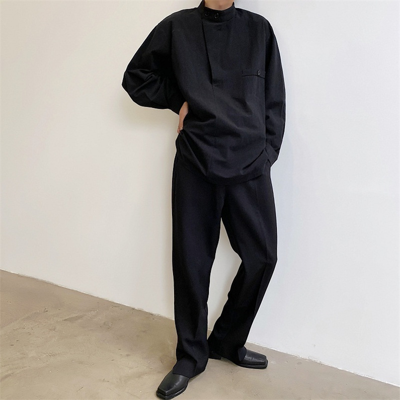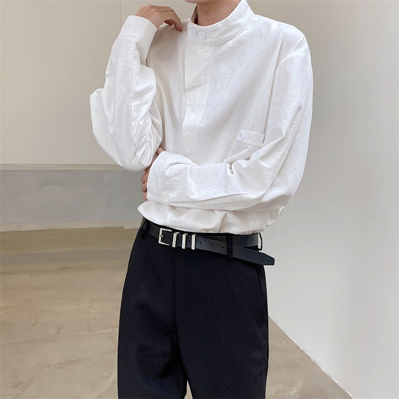 メンズ シャツ カジュアルシャツ 長袖 ワイシャツ プルオーバー 発表会 ホワイト ブラック クラブ 無地 スタント春秋 ダンスウェア 公演 男子トップス