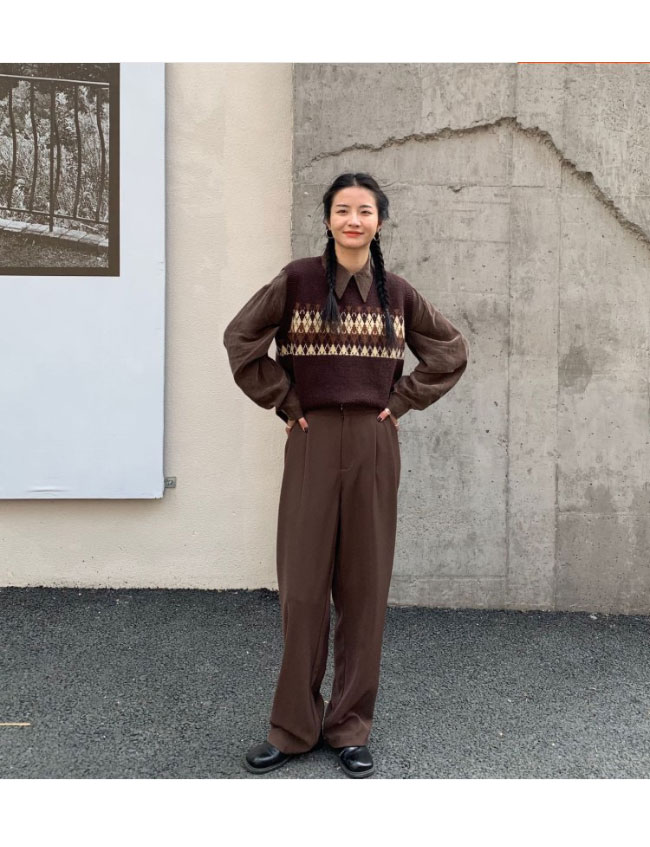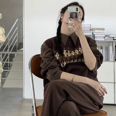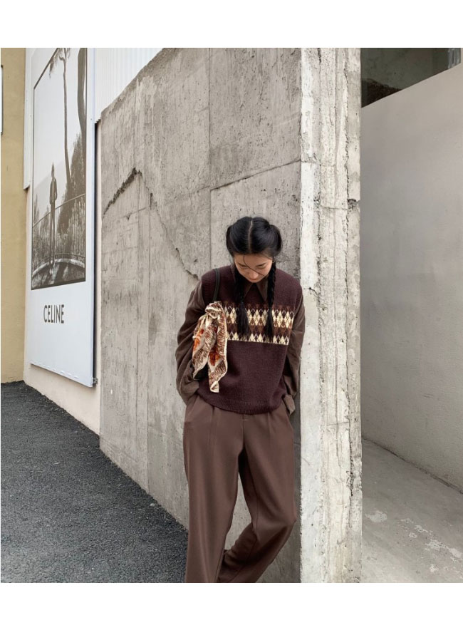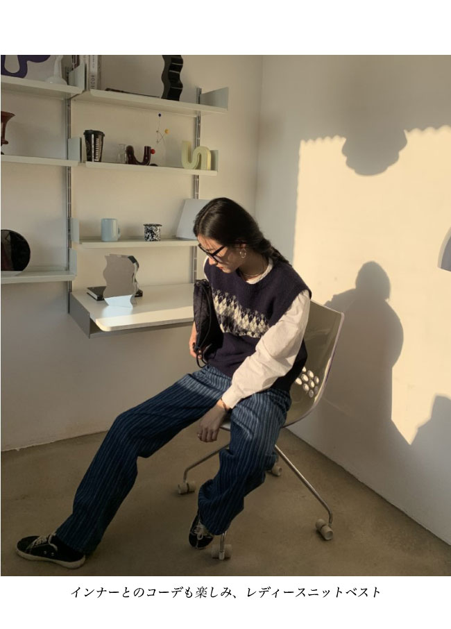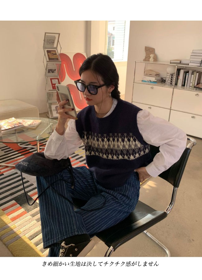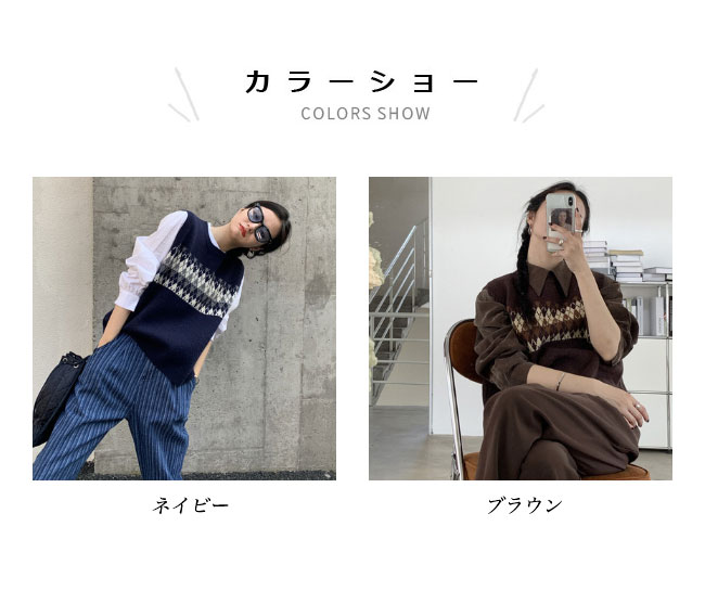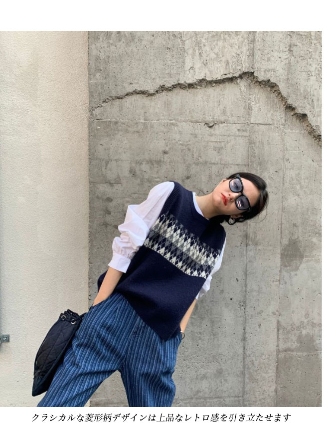 ニットベスト レディース ベスト プルーオーバー チェック柄 ニットジレ クルーネック スクールベスト ニット ジレベスト レトロ プルベスト 菱柄 オフィス 重ね着 チョッキ ジレ チェック柄ベスト 丸首 ニットトップス ネイビー ブラウン