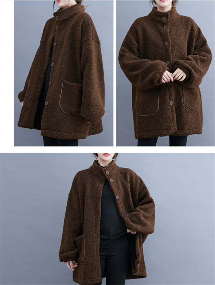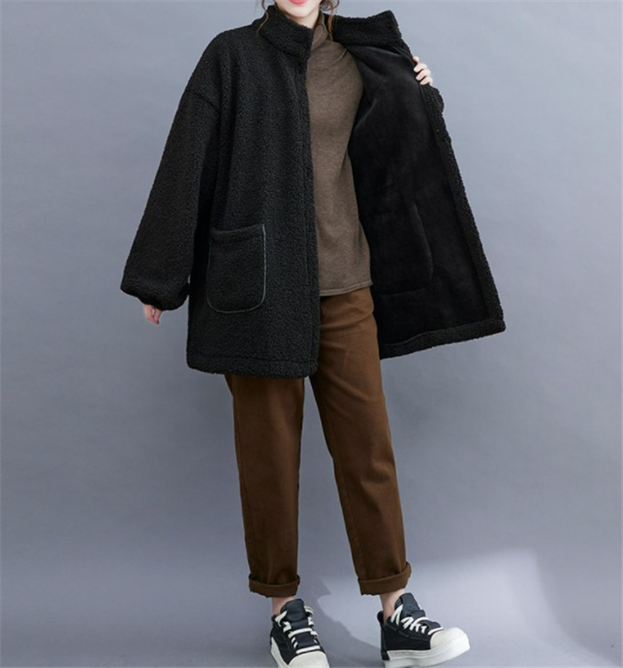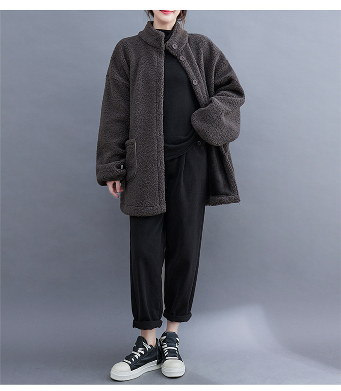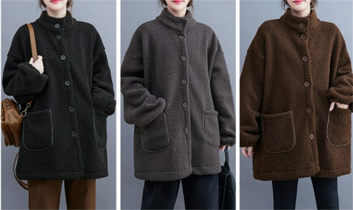 ミドルコート レディース 秋冬 アウター ジャケット 長袖 大きいサイズ プードルファーミディアム ポケット 体型カバー 無地 冬 秋 防寒大人 厚手