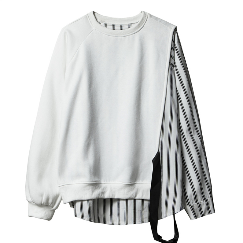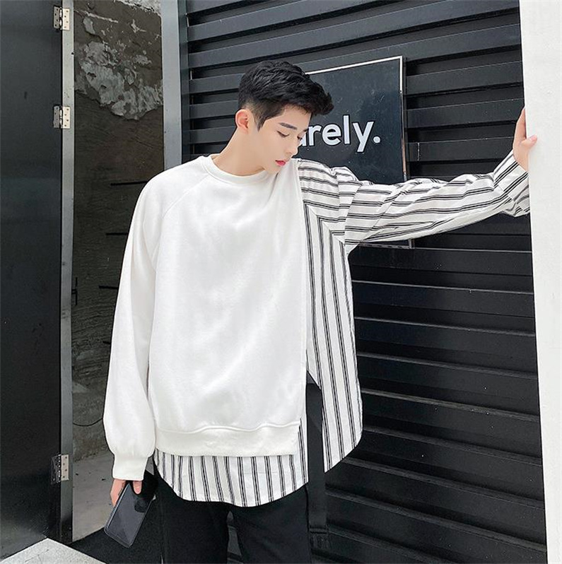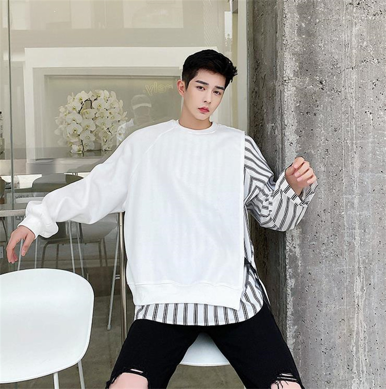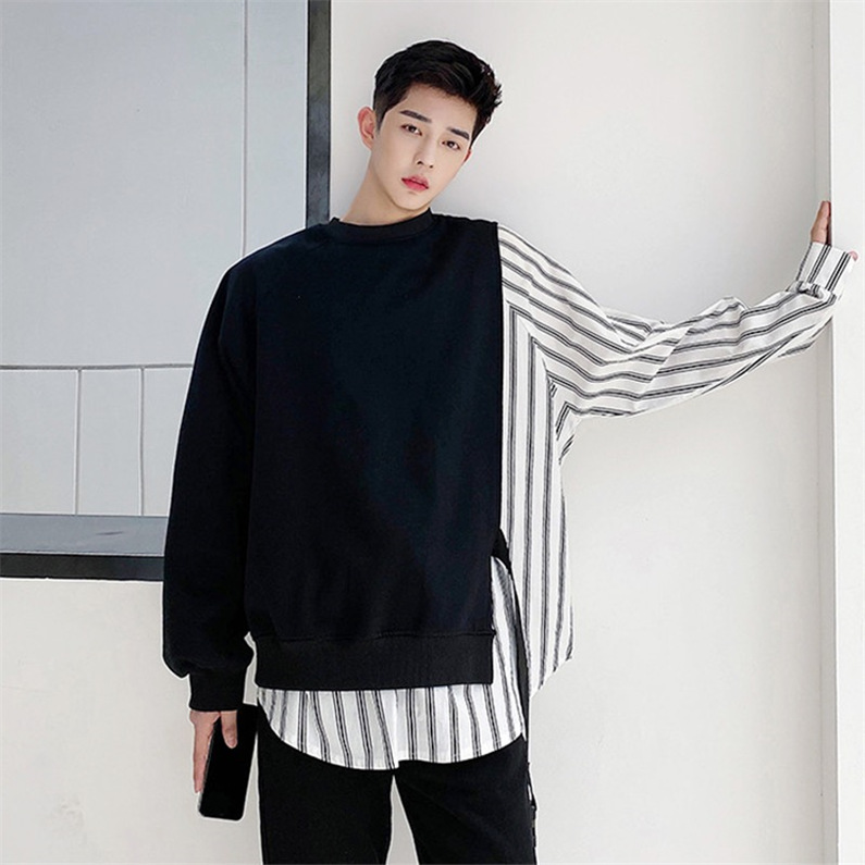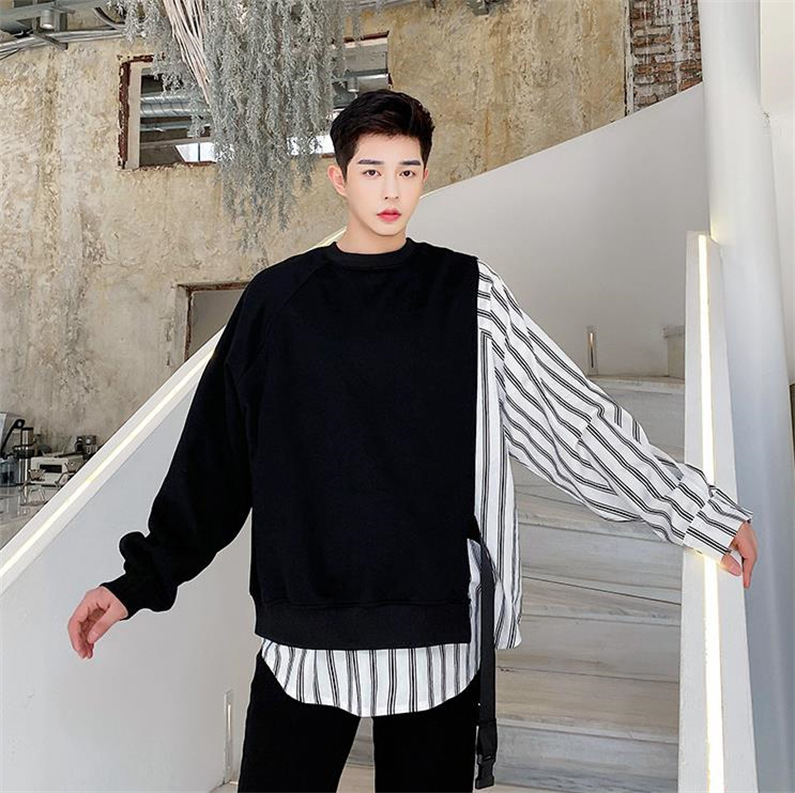 メンズ 丸首 カジュアル 長袖 シャツ 白黒 クラブ 発表会 公演 パーティー ダンスウェア 春秋 スタイリッシュ ワーク ストライプ 男子トップス