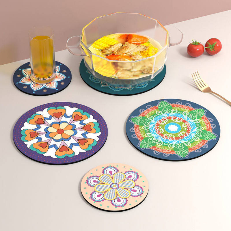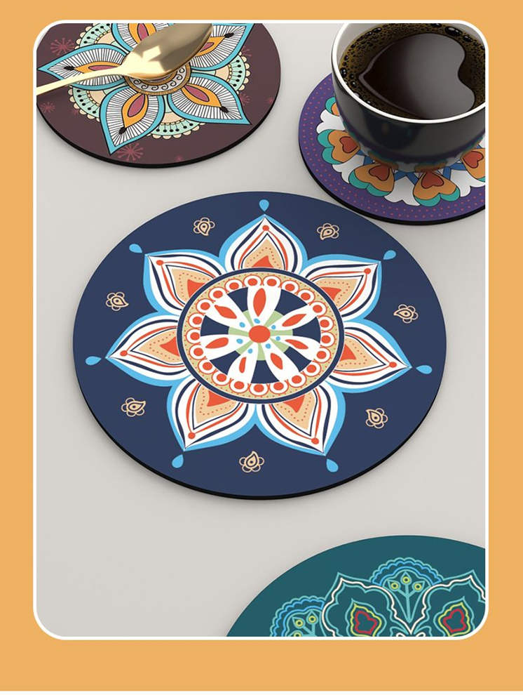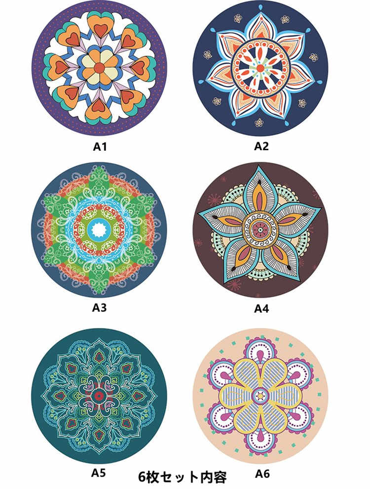 コースター 6枚セット 選べる2サイズ コップ敷き インディアン風 カップマット コップマット テーブルマット 食器マット ランチョンマット 食卓マット 断熱 円形 シリコン 耐熱性 おしゃれ 北欧 防水 滑らない 敷物 プレイスマット 食卓 耐熱