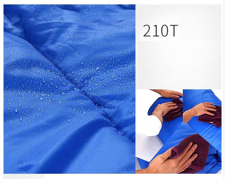 素材構成 側生地:さらさら210T高密度生地(ポリエステル100%) 撥水コーディング、耐裂性と速乾性に優れています。内生地:肌触りが良いソフト生地(ポリエステル100%)、柔らかくて快適な素材で、いつでも寝袋に入ると暖かい感じがします。中綿:防寒性能に優れたシルクコットンを採用しています。肌触りと寝心地がよいです。