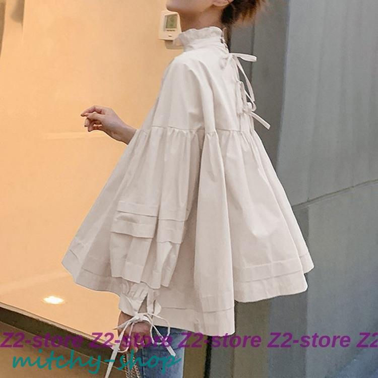 ブラウス レディース 春 秋 ハイネック ギャザー フリル衿 リボン フレア 長袖トップス オシャレ 通勤 大人 OL ゆったり 20代 40代 着痩せ 春コーデ