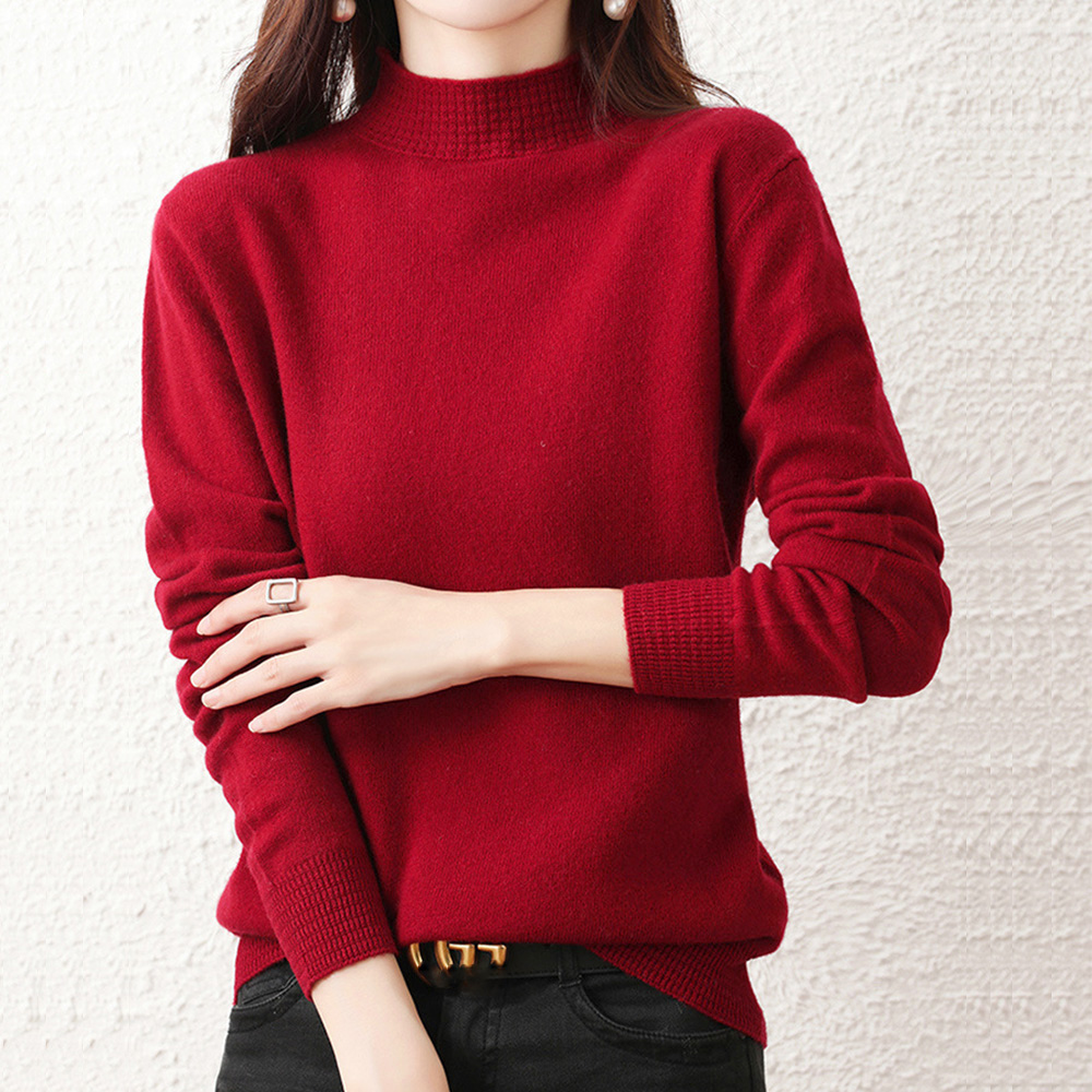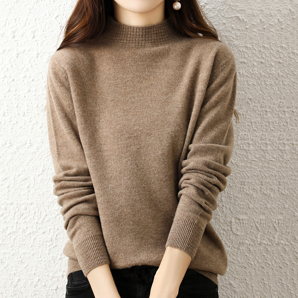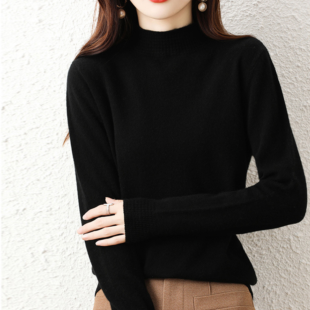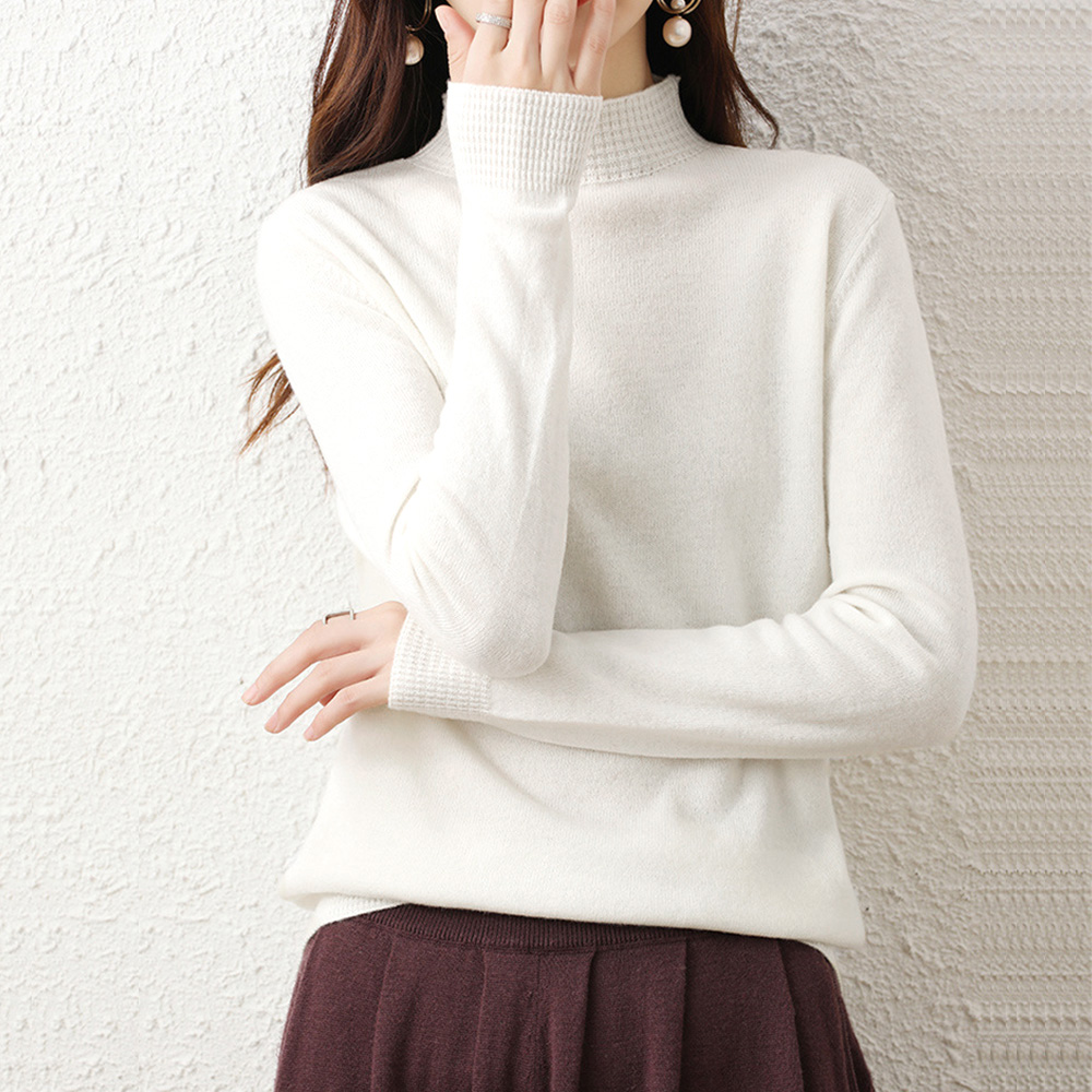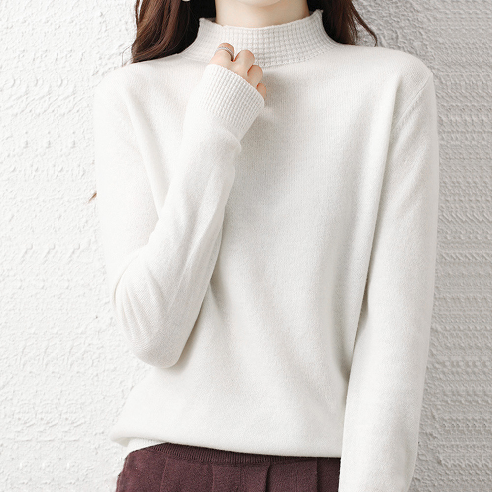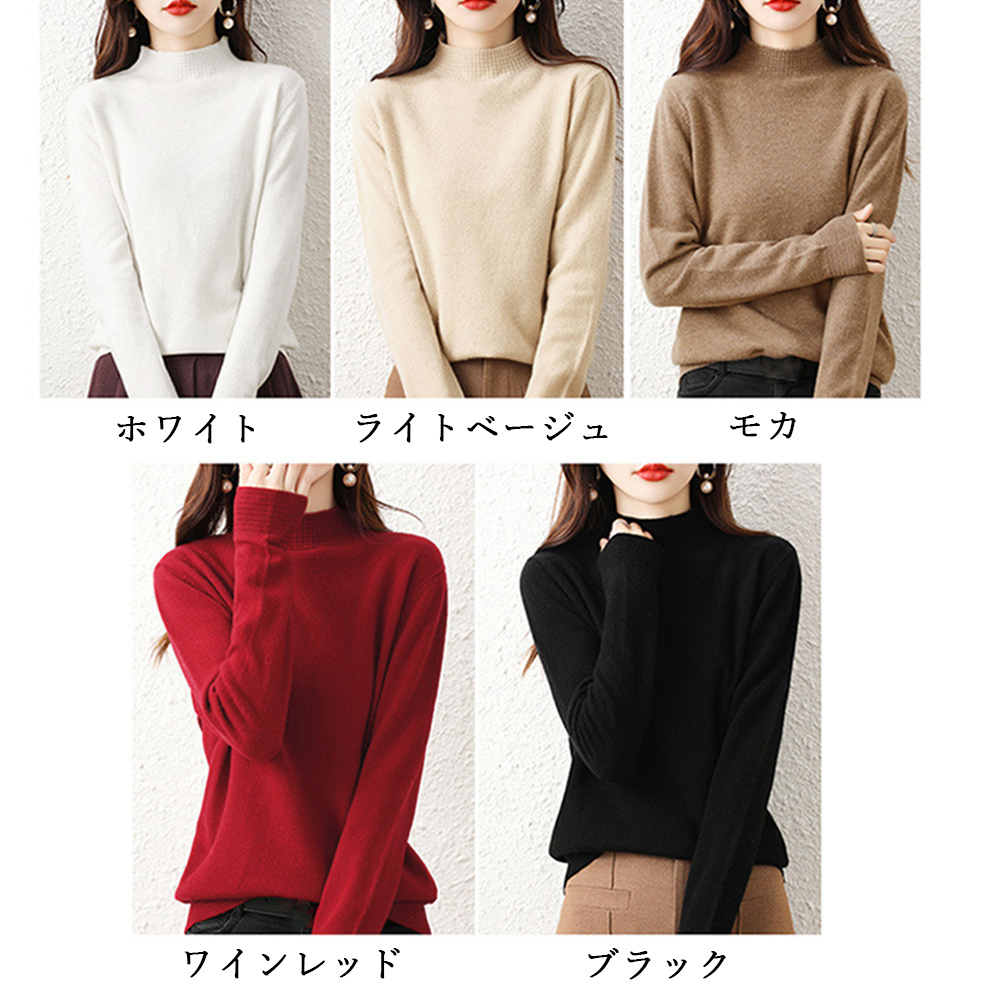 韓国長袖 ニットソー シンプル無地 ニットセーター 大人可愛い 秋服女性 ハーフネックニットインナー 春秋冬着回しニット