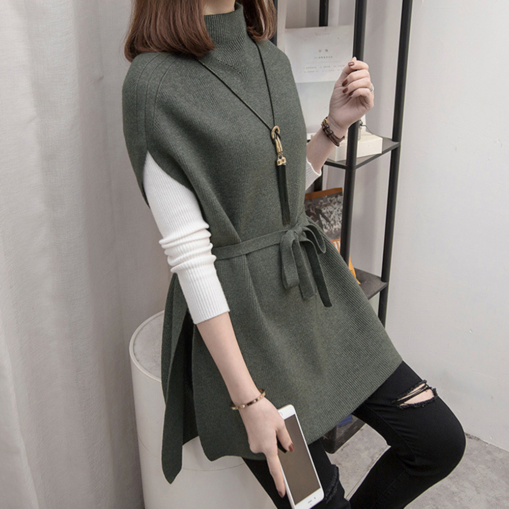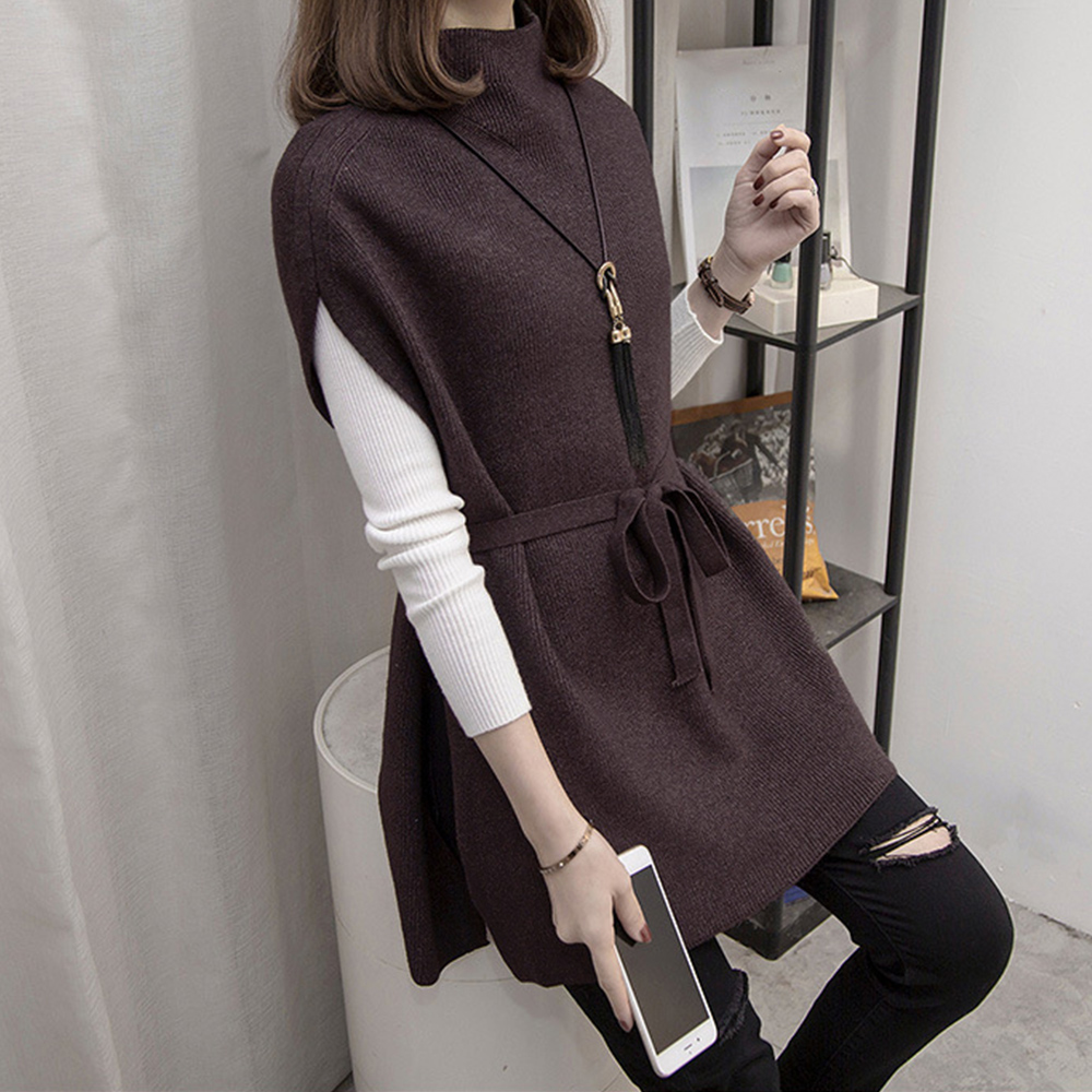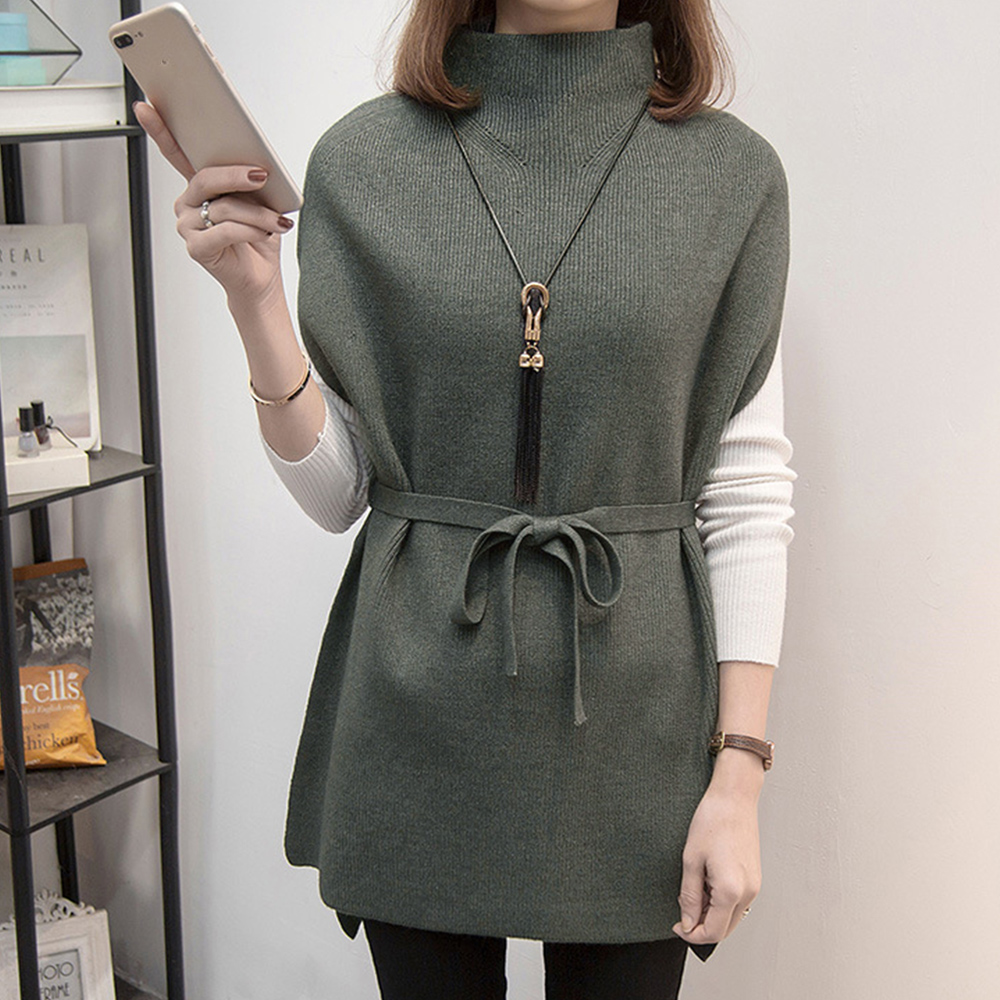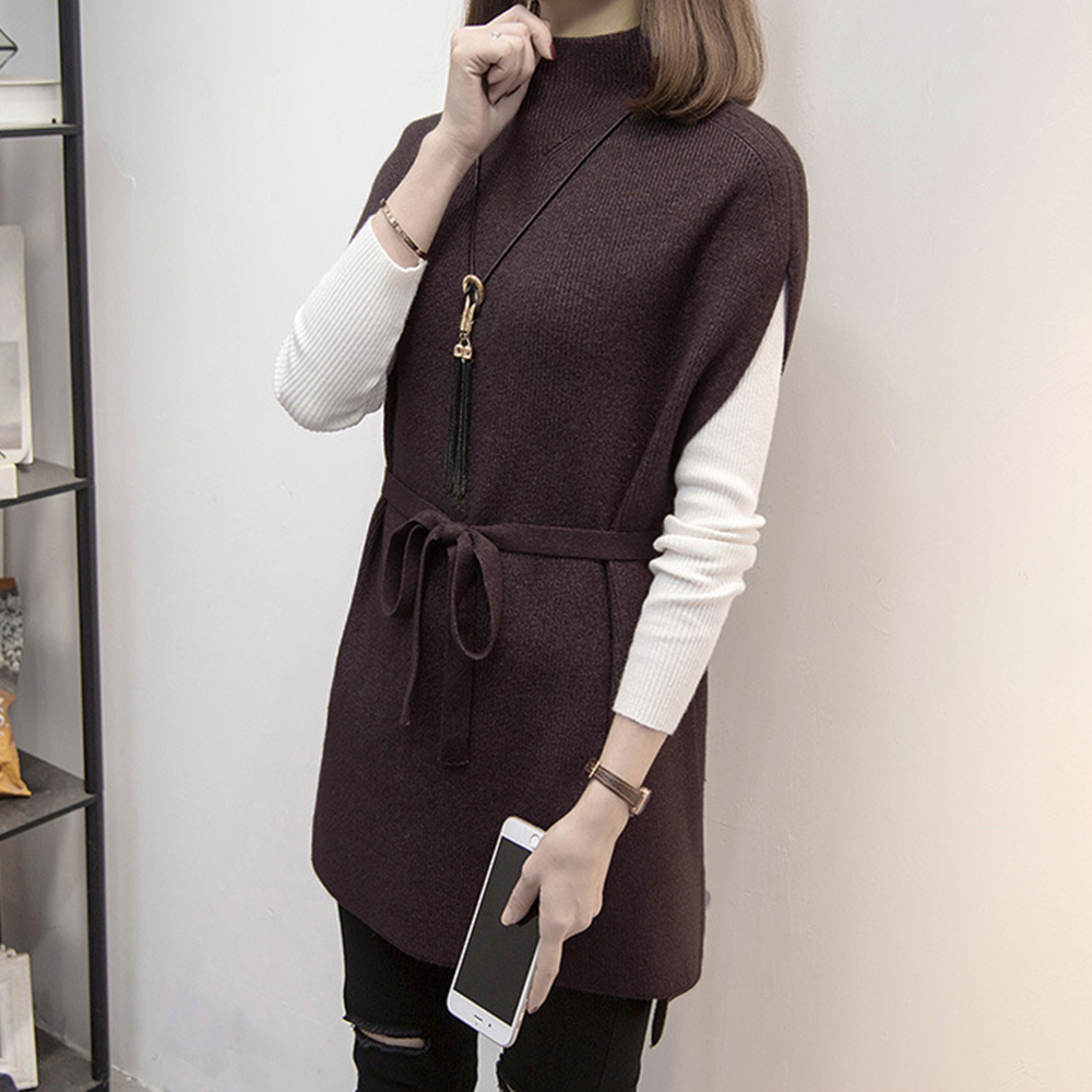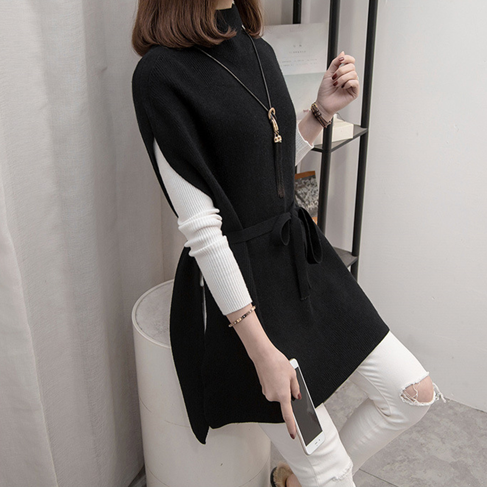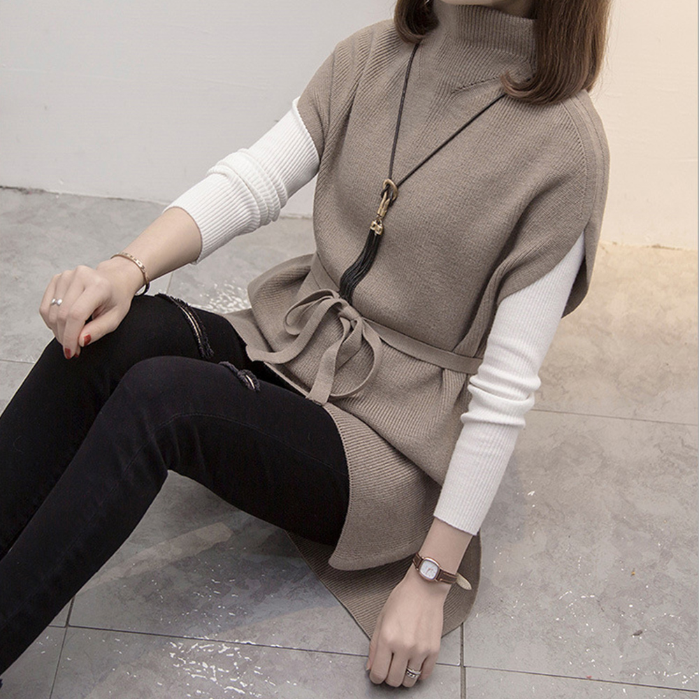 プチハイネック ニットトップス レディース 無地 体型カバー 重ね着 ロングニットベスト 秋冬服 30代40代カジュアル