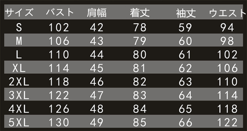 ◆サイズ(約CM):S、M、L、XL、2XL、3XL、4XL、5XL