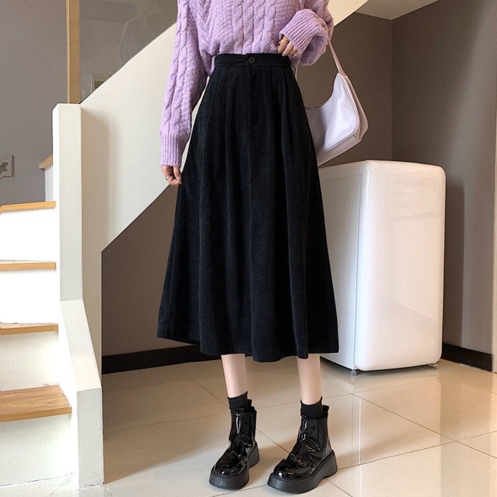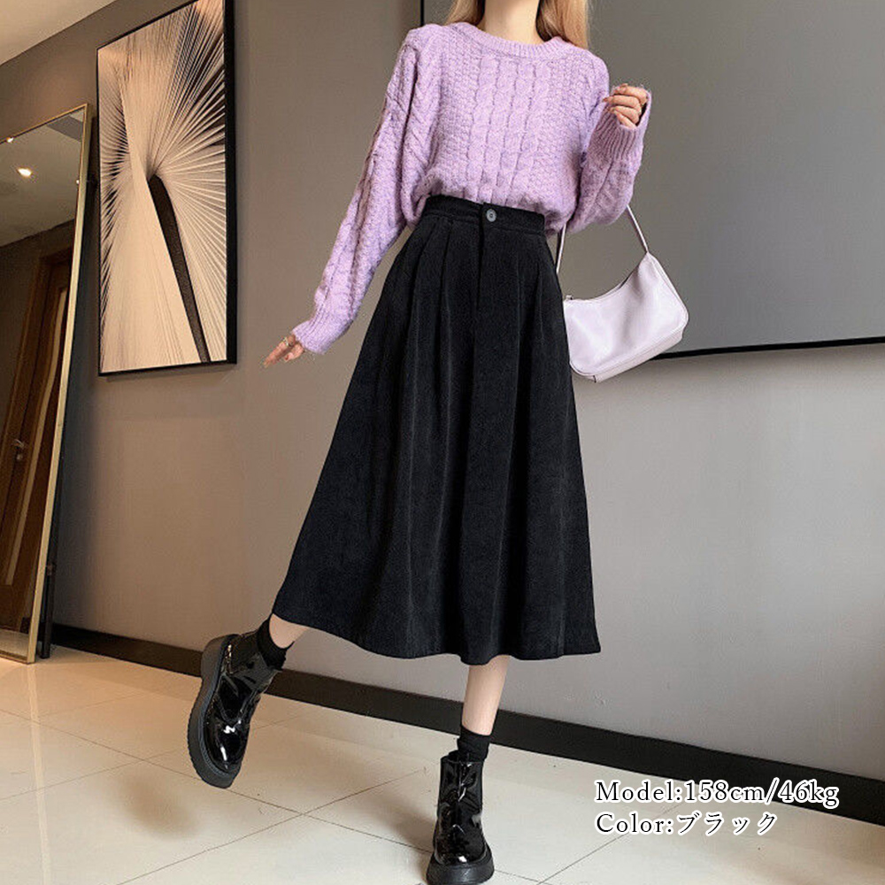 コーデュロイスカート 秋冬フレアスカート 。可