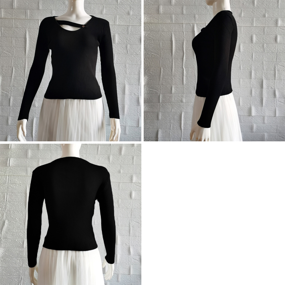 1枚を着るだけで、きれいめなオトナ女子に変身できるリブニットトップス