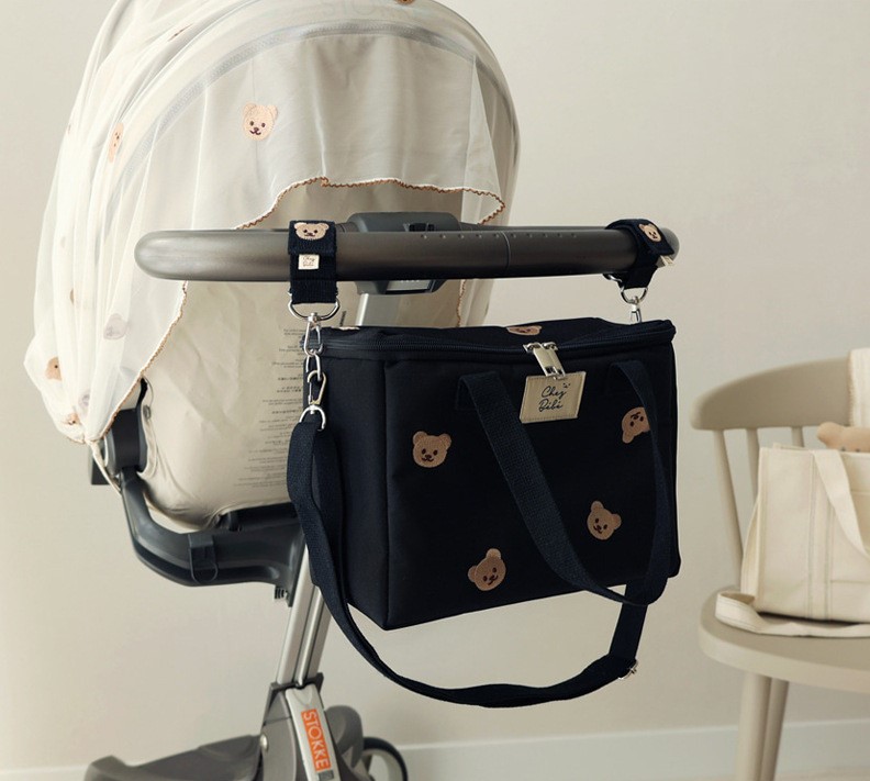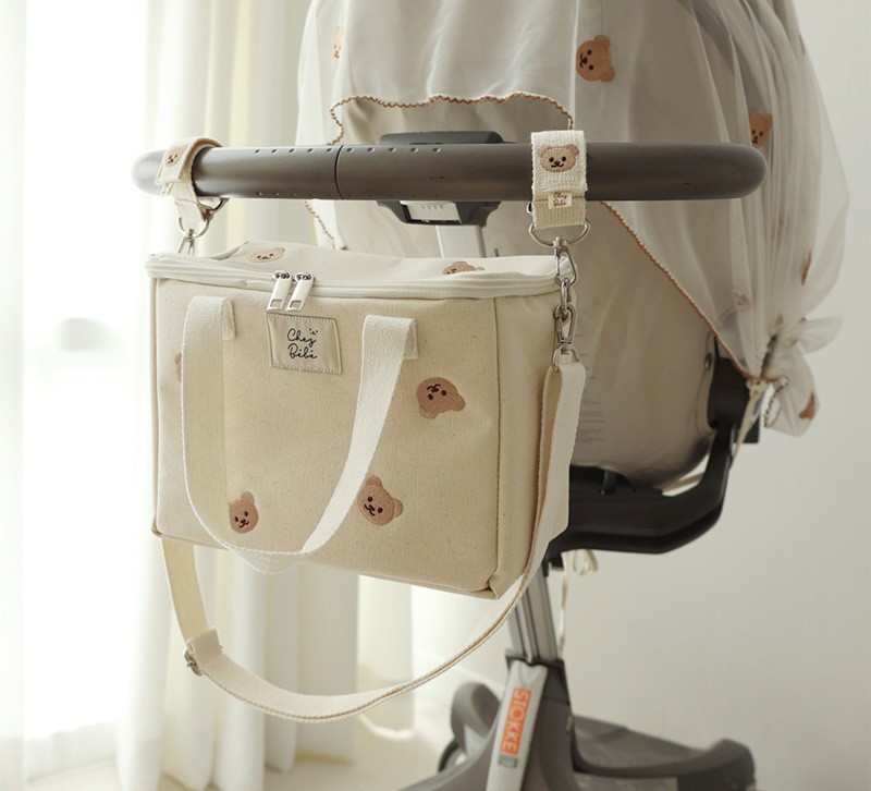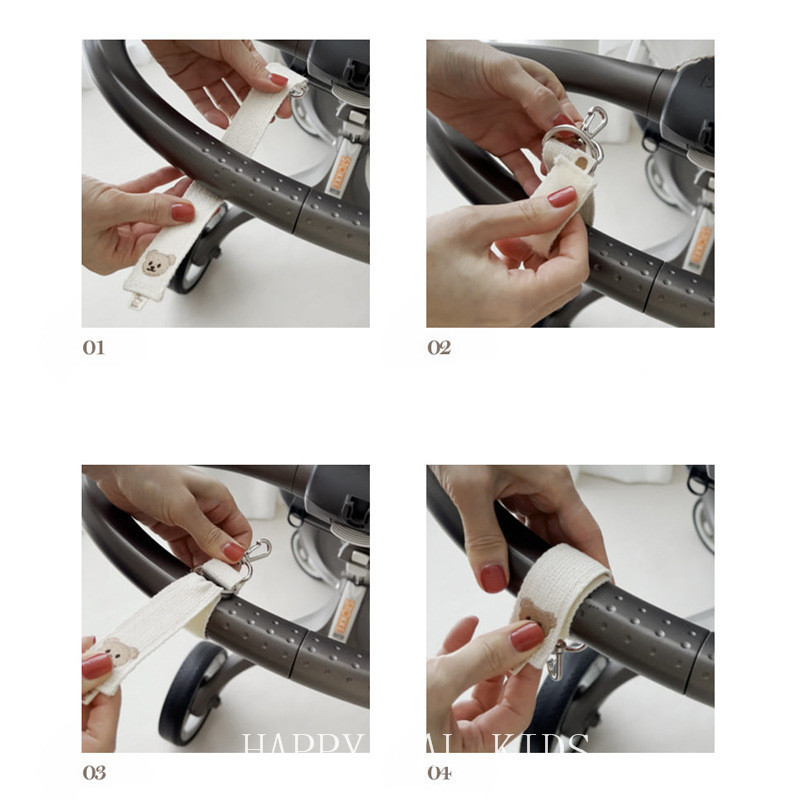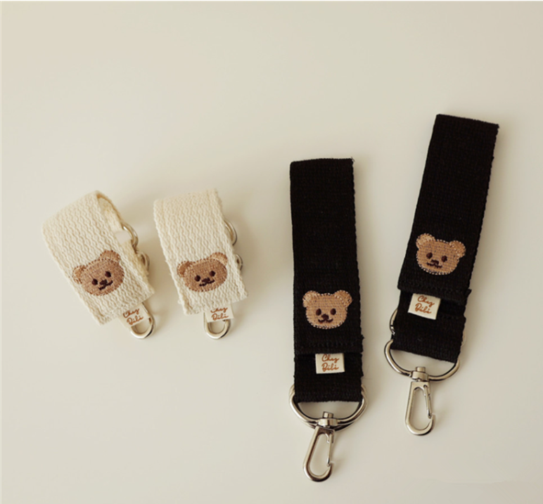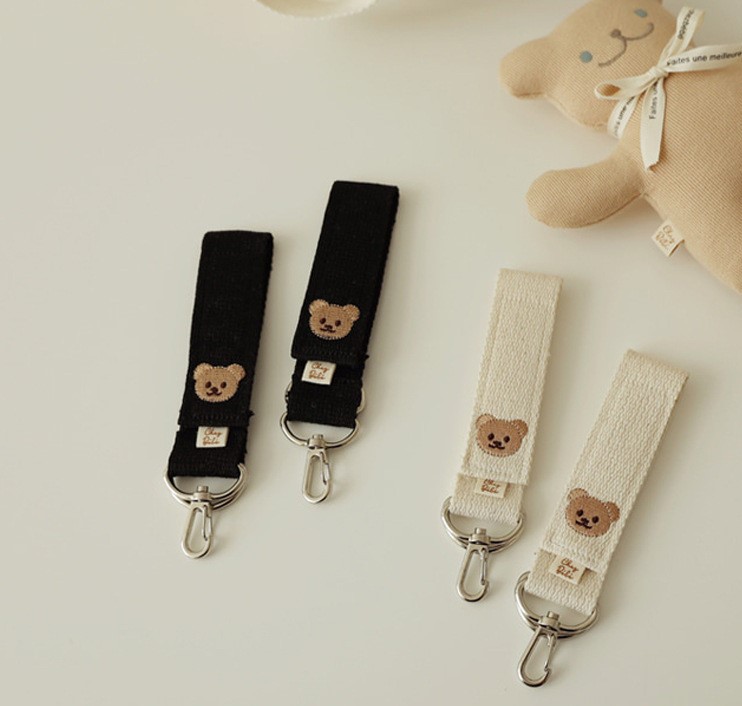 2個セット くま ベビーカー 吊り下げ フック 2色 ベビーカーフック バギーフック 取っ手 白 ホワイト ベージュ 黒 ブラック ベア 韓国 おしゃれ 可愛い ナチュラル シンプル 刺繍 ホック クリップ バッグ おむつポーチ 靴 シューズ