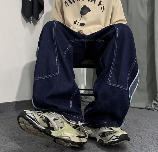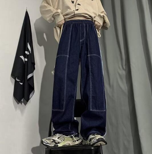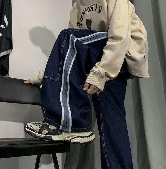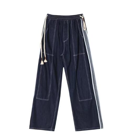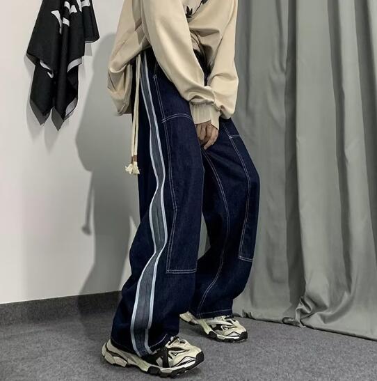 ライン デニム パンツ ジーンズ ゴム 韓国 K-POP 原宿系 HIPHOP ストリート ダンス衣装 レディース
