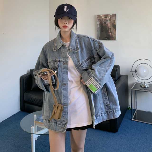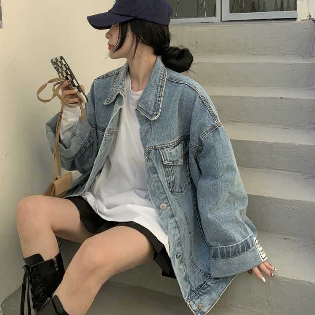 アウター デニム ジャケット デニムジャケット レディース ライトアウター ミディアムジャケット 羽織 キレセク 襟付き オーバーサイズ 長袖