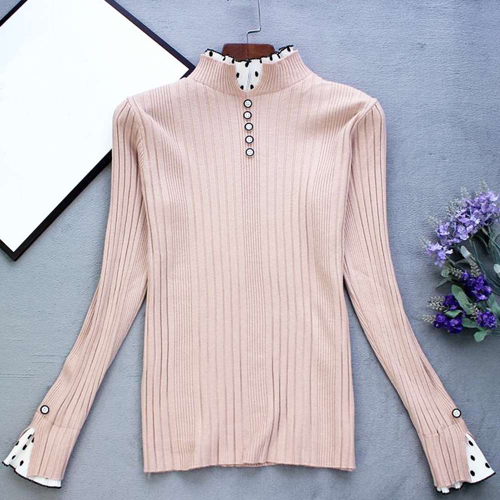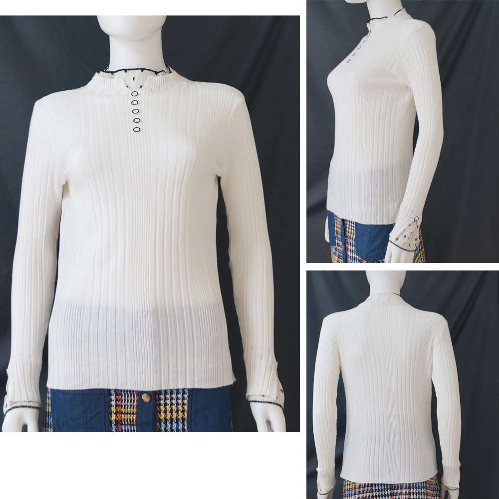 襟元と袖元のシフォンがポイントで、女性らしさを強調してくれるニットトップス