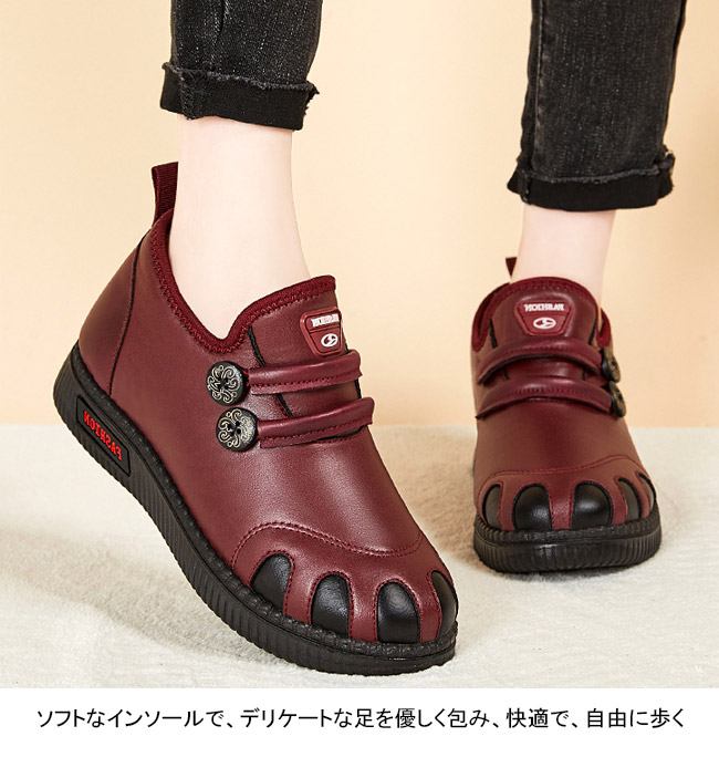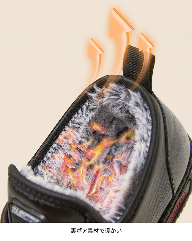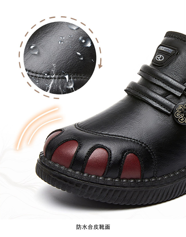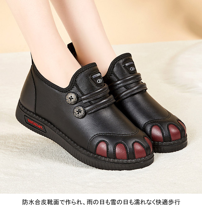 防水合皮靴面で作られ、雨の日も雪の日も濡れなく快適歩行!